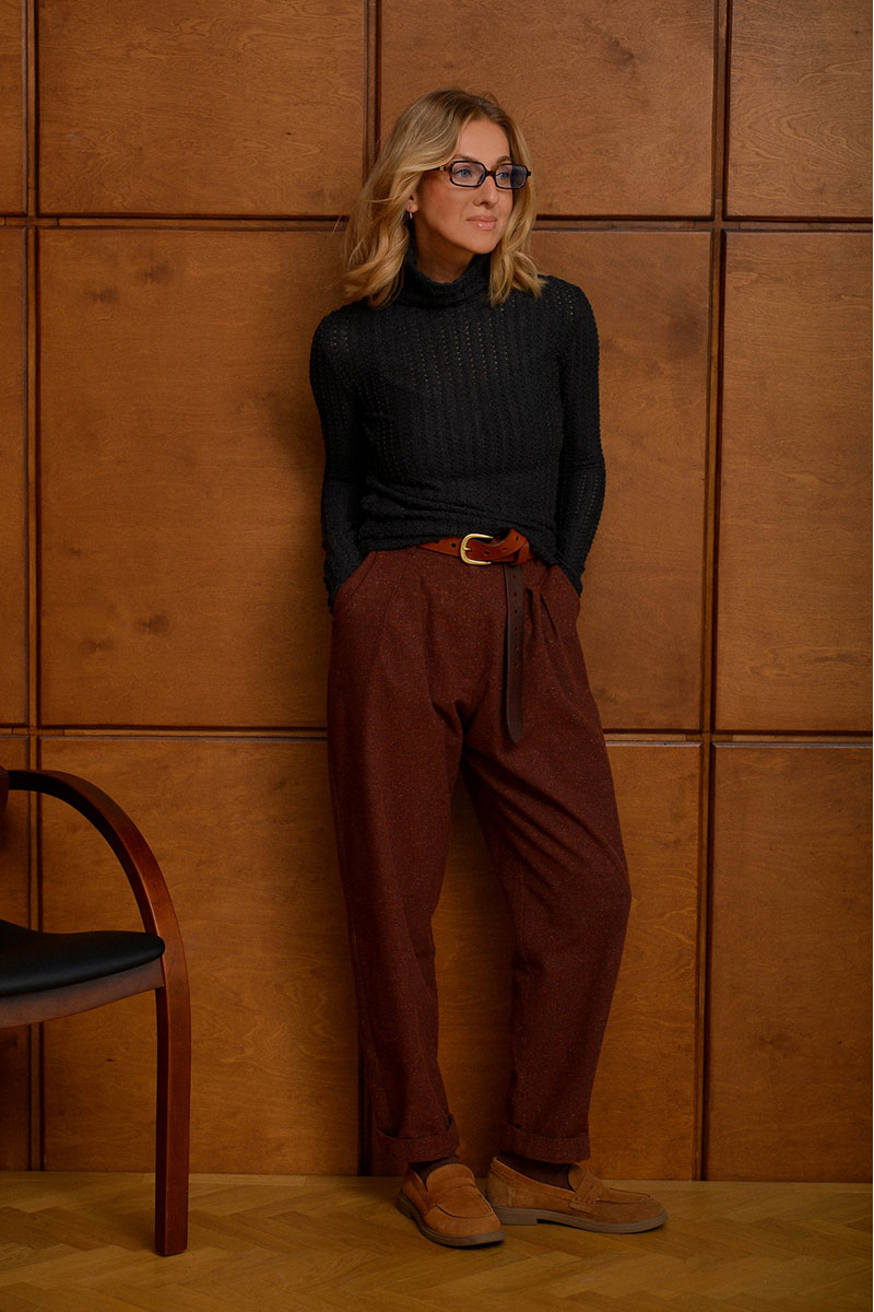 Водолазка в графитовом оттенке. Мягкий, приятный к коже эластичный ажурный трикотаж на основе вискозы. Комфортно облегает силуэт, приятный на ощупь и отлично подходит для ношения под жакет. Удлиненный рукав.