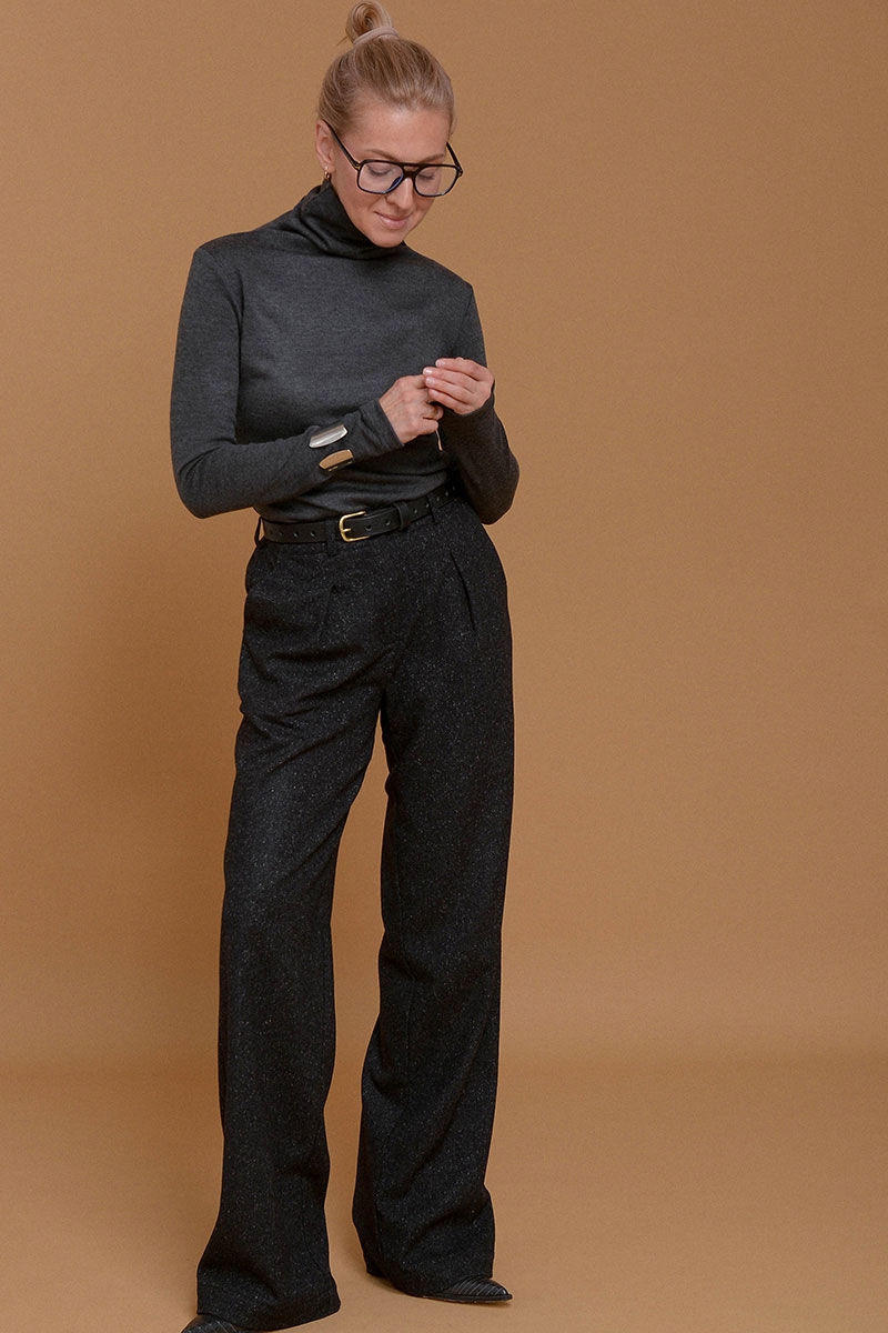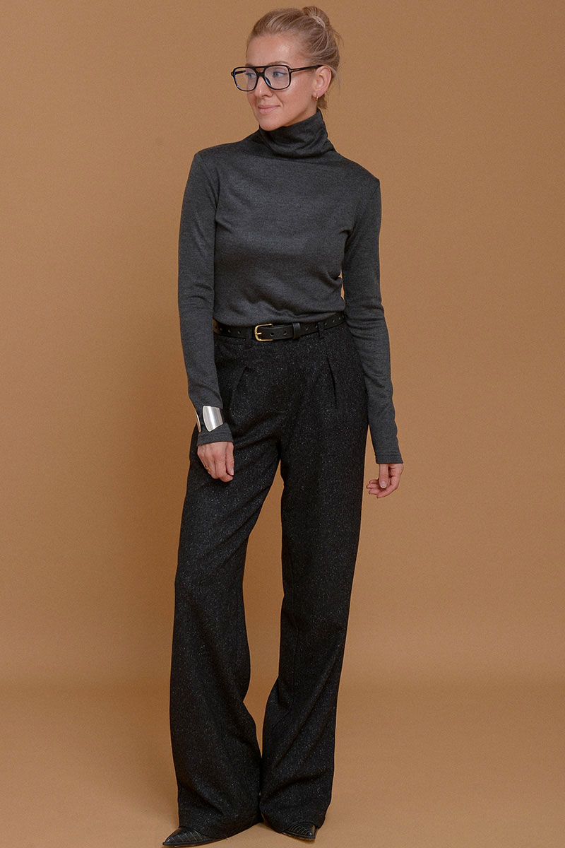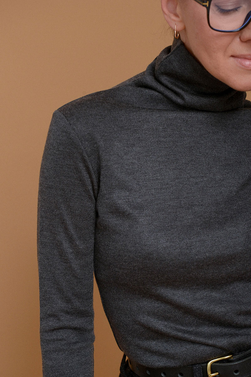 Водолазка в графитовом оттенке. Выполнена из мягкой смесовой шерсти и вискозы, нежного и гладкого материала - почти не ощущается на теле.Комфортно облегает силуэт и отлично подходит для ношения под жакет. Особенность изделия - высокая цельнокроенная горловина.