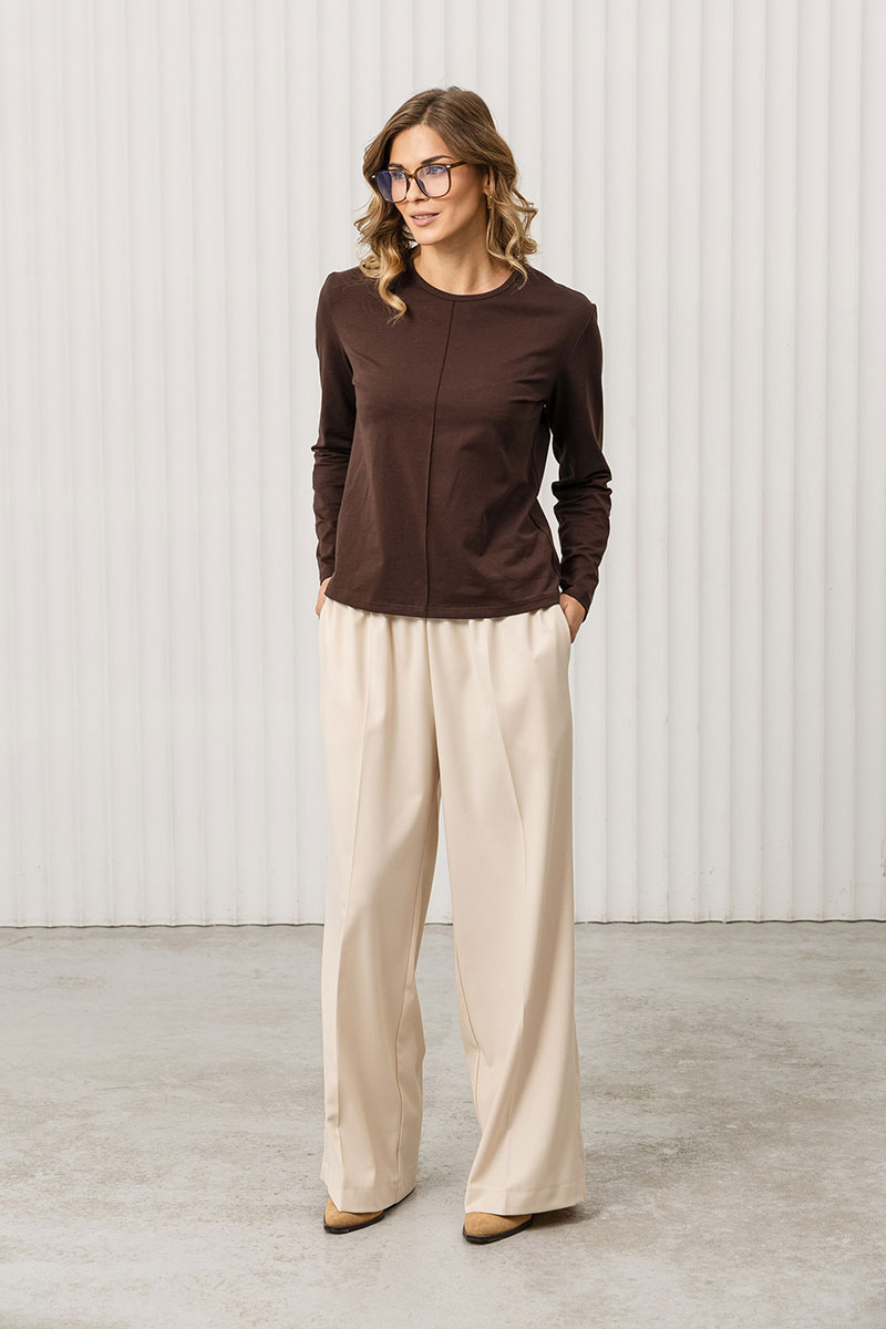 С чем носить: джемпер отлично сочетается с брюками классического кроя, как на фото, юбками-карандаш или джинсами. Для завершения образа подойдут туфли на каблуке, лодочки или балетки. Дополните образ минималистичными аксессуарами, такими как серьги или тонкий браслет.