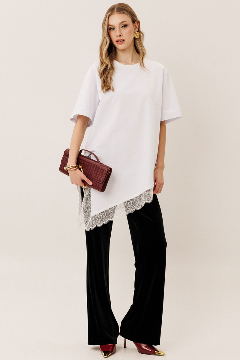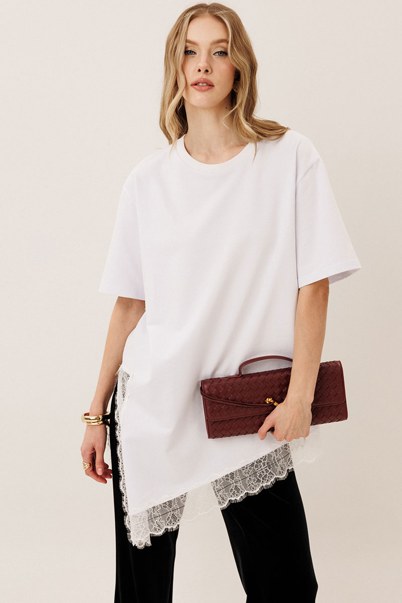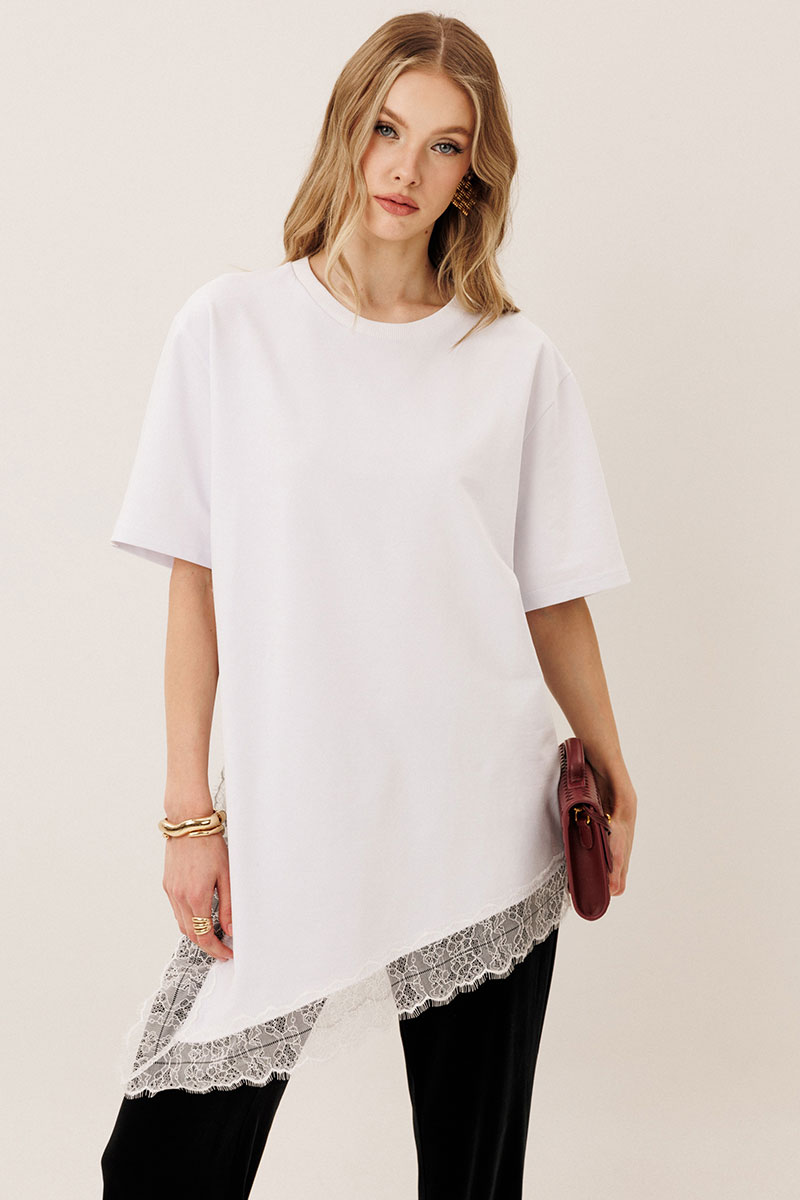 Ассиметричный крой+трендовое кружево = базовая футболка уже не базовая!