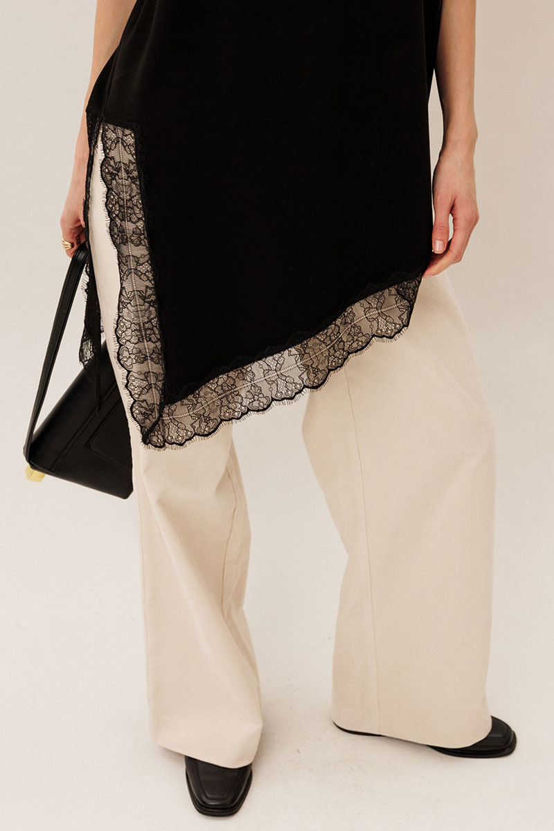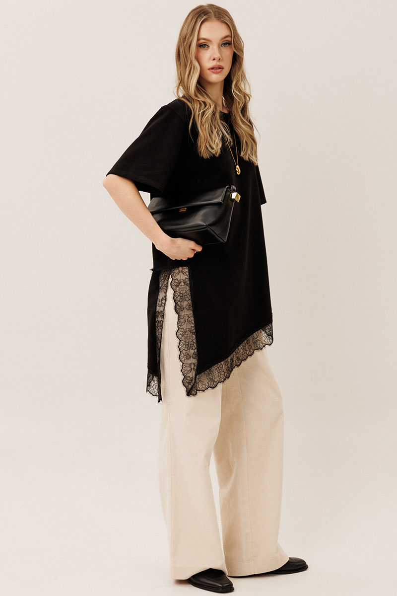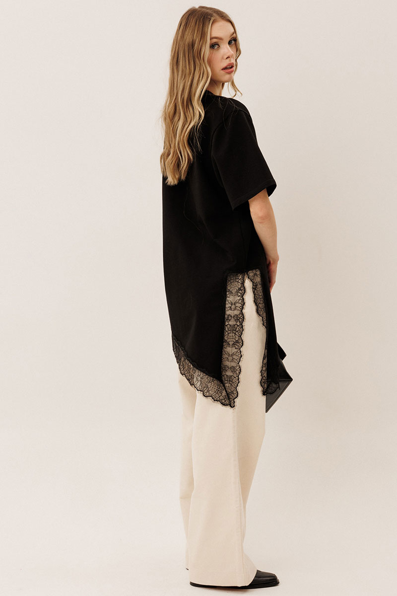 Ассиметричный крой+трендовое кружево = базовая футболка уже не базовая!