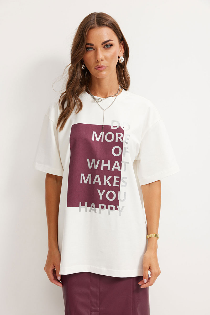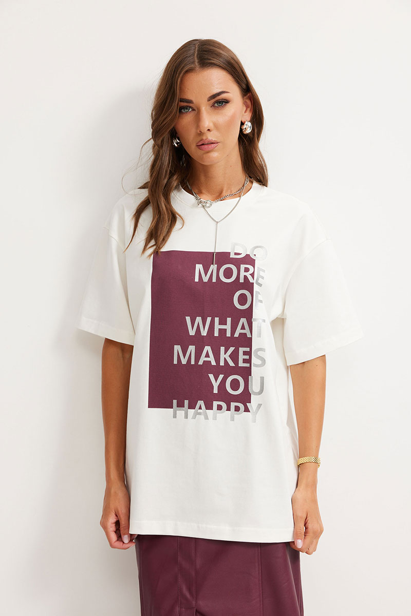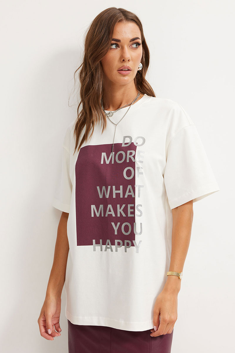 Джемпер женский свободного силуэта из комфортного трикотажного полотна, длиной до линии бедер. Горловина округлая. Рукав со спущенной линией плеча длиной до локтя. По переду расположена дизайнерская печать. Обращаем ваше внимание, что фурнитура может отличаться от фото. Модель подойдет на рост 164-170 см.