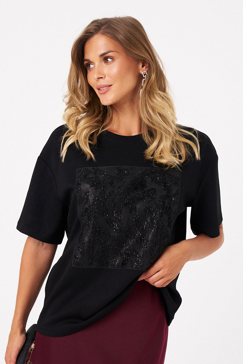 Этот стильный, удобный и универсальный джемпер станет яркой деталью вашего гардероба. Благодаря комфортному крою и модным акцентам вы будете чувствовать себя уверенно и выглядеть современно. Цвет джемпера — классический черный.