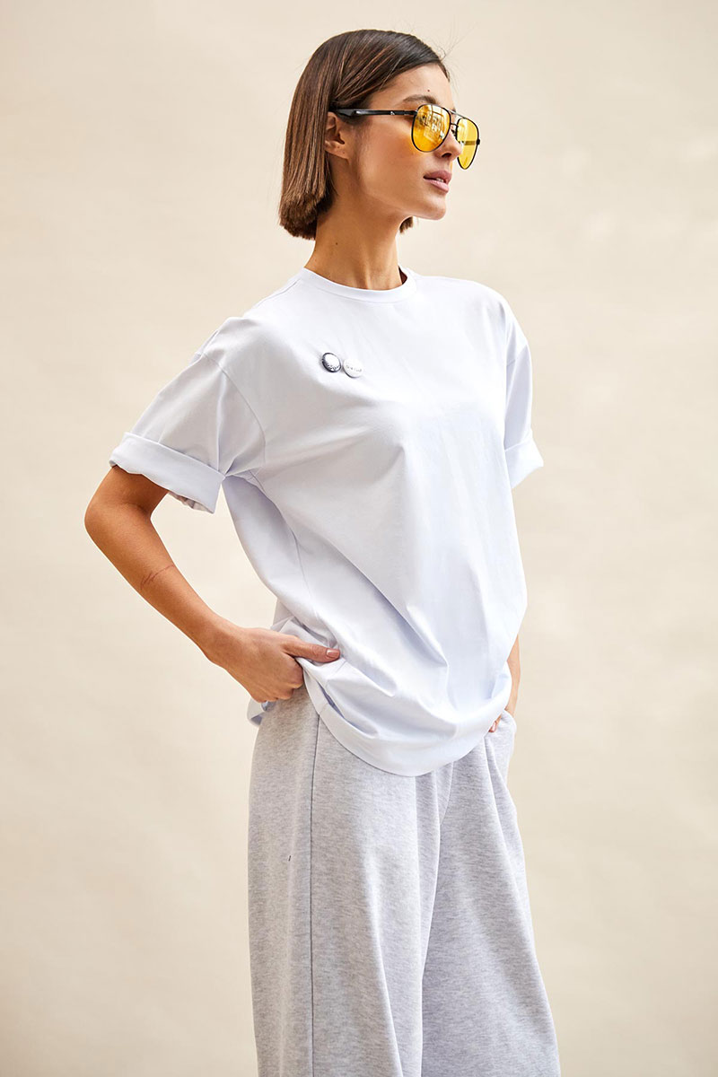 - футболка дополнена украшением по переду;