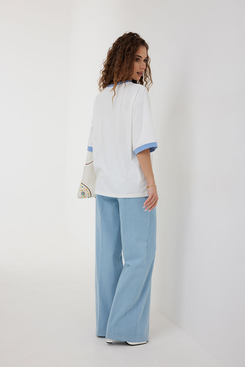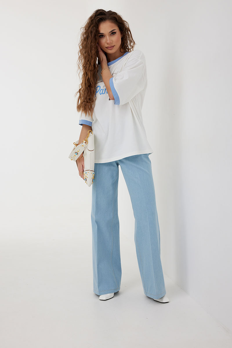 Джемпер прямого силуэта из трикотажного полотна. Горловина круглой формы. Расширенная линия плеча. Рукав прямой, по низу отделка. По переду вышивка.
