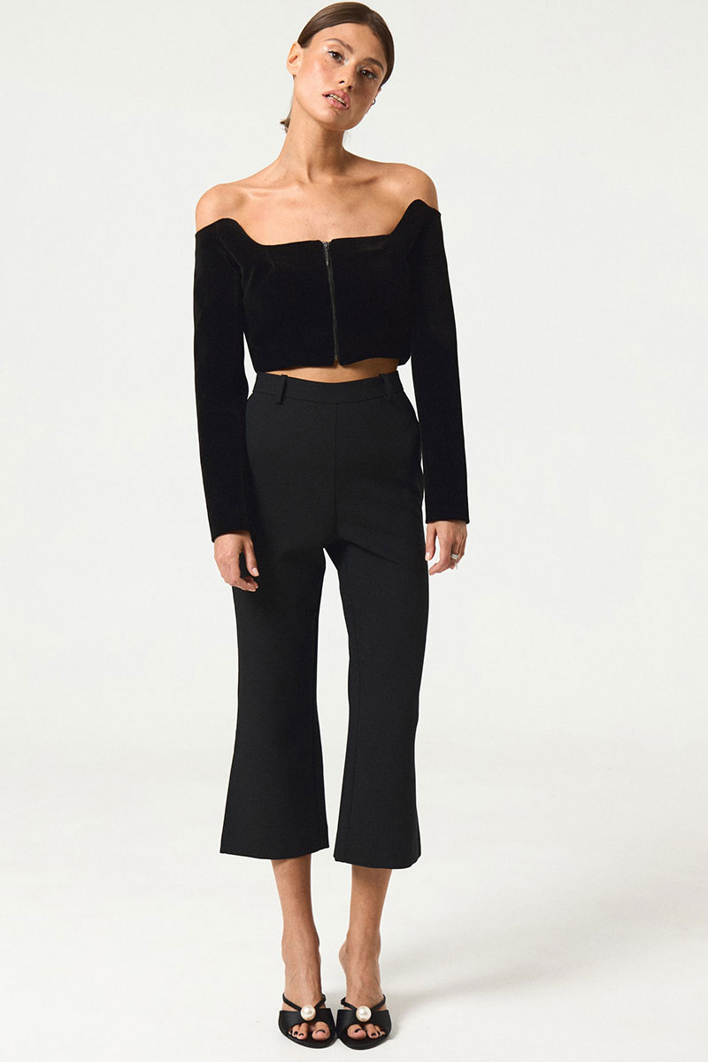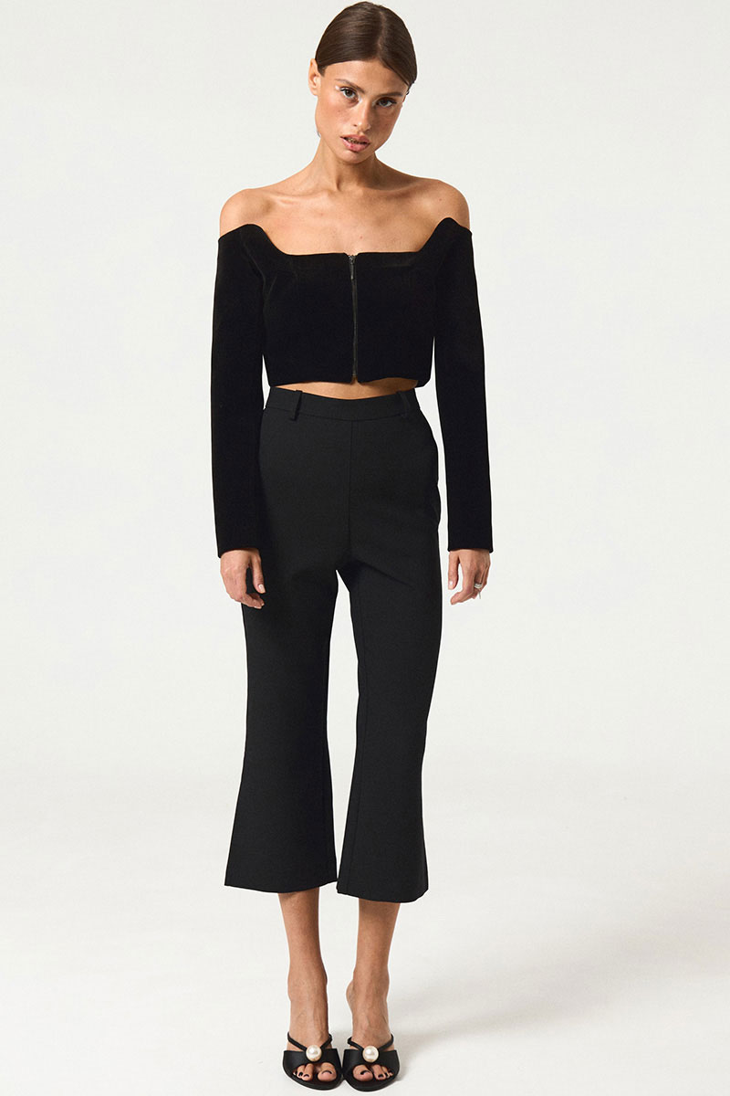 Топ прилегающего силуэта, с фигурным вырезом по переду и спинке. Рукав длинный. По переду изделия застежка на молнию.