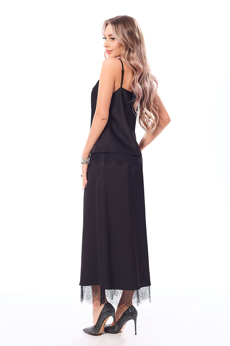 Описание внешнего вида: топ на бретелях с регуляторами, с фигурным вырезом горловины. По переду с отрезными чашками. Горловина переда и низ топа декорированы кружевом.