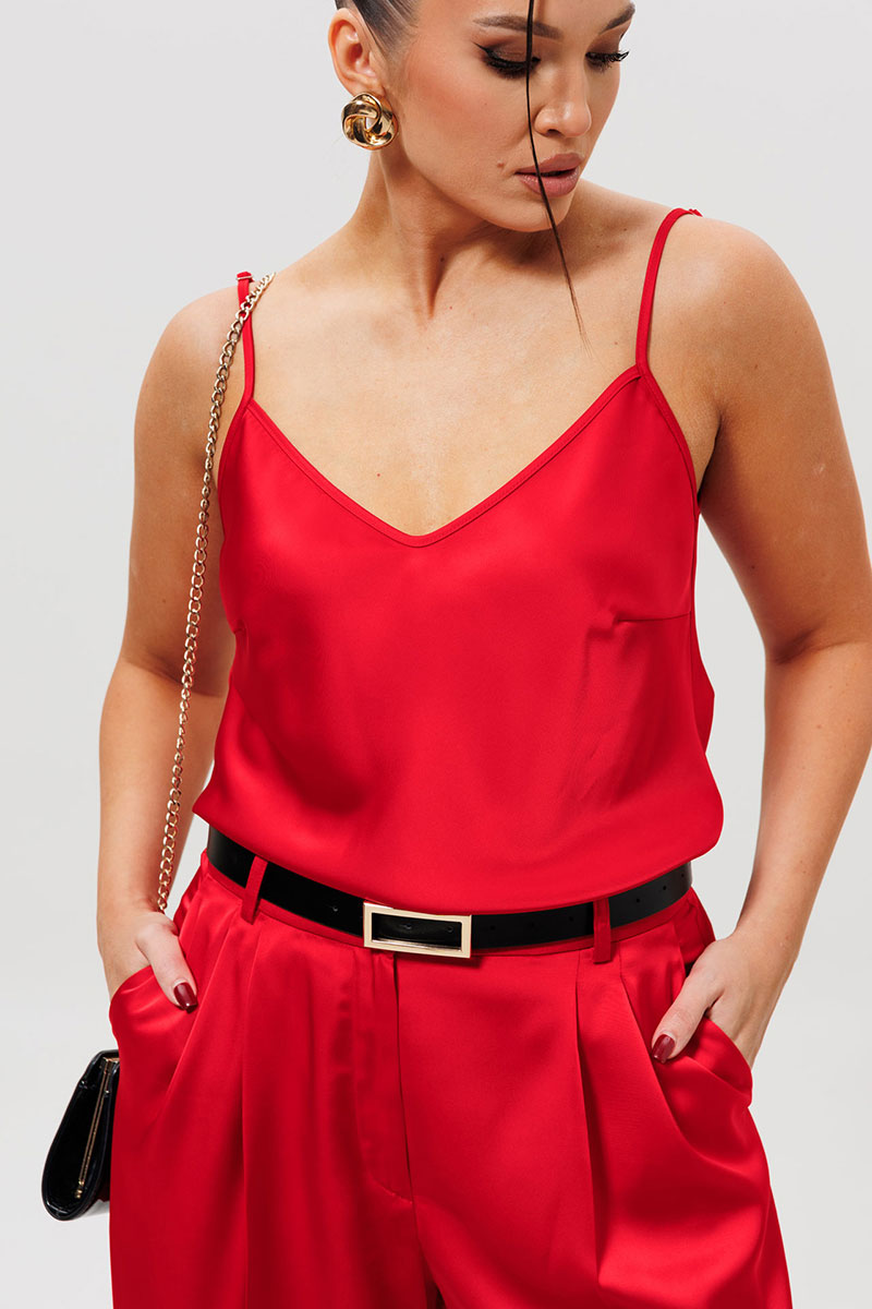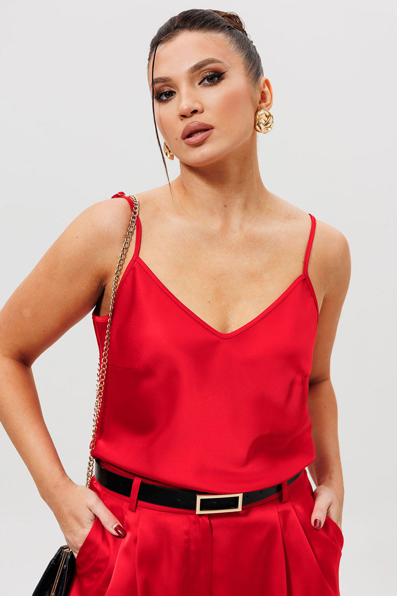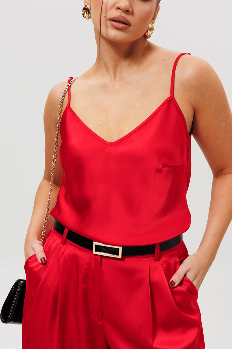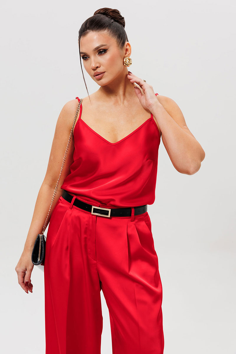 Элегантный атласный топ — идеальный выбор для тех, кто ценит роскошь и комфорт в повседневной жизни. Модель выполнена из гладкого атласа, который придает образу блеск и шик. V-образный вырез подчеркивает линию шеи и создает эффект стройности, а тонкие регулируемые бретели обеспечивают удобную посадку. Топ доступен в двух цветах: яркий красный и классический черный, что позволяет создавать разнообразные образы. Красный топ станет отличным выбором для вечерних мероприятий, добавляя образу дерзости и энергии, а черный — идеален для офиса или деловых встреч, создавая строгий и элегантный образ. Гладкий атлас обеспечивает приятное ощущение на коже и добавляет образу роскоши. V-образный вырез и тонкие бретели делают топ модным и привлекательным. Подходит как для вечерних мероприятий, так и для повседневной носки. Регулируемые бретели позволяют адаптировать топ под разную фигуру. Комбинируйте с юбкой-миди и высокими каблуками для создания эффектного образа. Наденьте с классическими брюками и туфлями на каблуке для делового стиля. Создайте расслабленный лук с джинсами и кроссовками. Топ отлично комбинируется с кружевной блузкой 1160бл, с белым жакетом 1048ж.