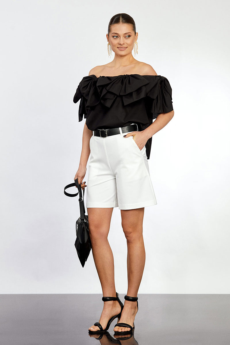 - с открытым декольте, вырез горловины горизонтальный, бретели спущены