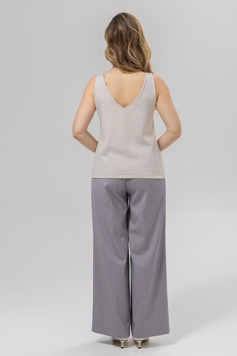 Дизайн: топ без рукавов с V-образным вырезом, что придаёт изделию женственность и стиль. Простой, но изысканный крой подчёркивает фигуру;