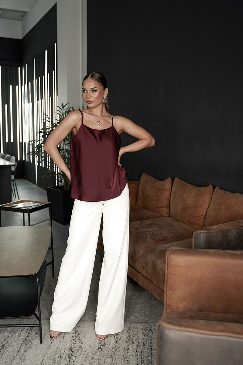 Атласная блузка-топ свободного силуэта на регулируемых бретелях. Блузка на атласной подкладке.