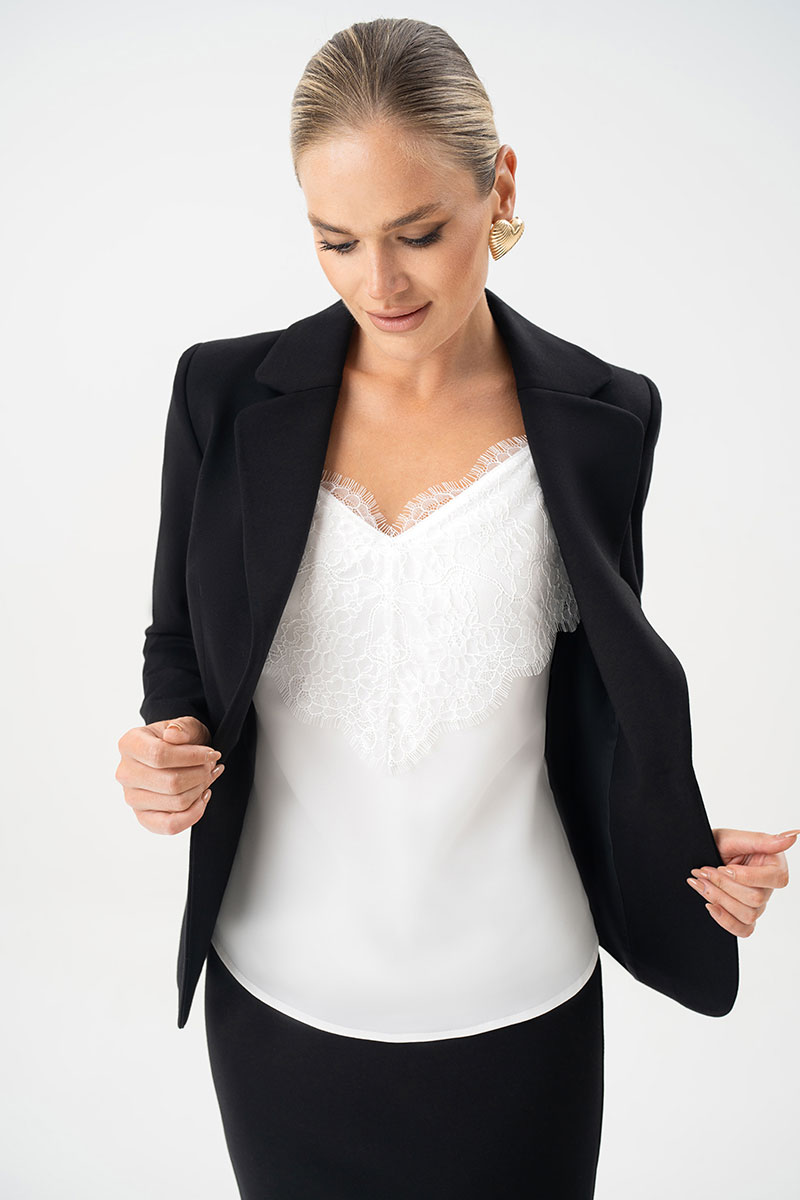 Топ с кружевом URS — это воплощение элегантности, женственности и безупречного вкуса. Такой топ станет универсальной базой в гардеробе современной женщины, которая ценит стиль и комфорт. Легкий и изысканный, он подчеркивает утонченность образа и гармонично вписывается как в деловой, так и в вечерний стиль.