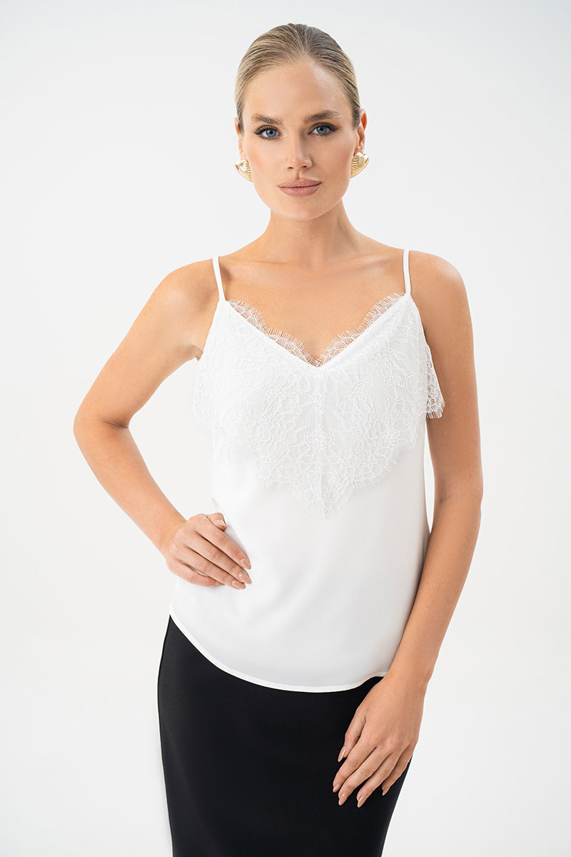Блузка женская ЮРС, на бретелях, полуприлегающего силуэта, выполнена из блузочной ткани на подкладке, может быть как нарядная, так и повседневная.