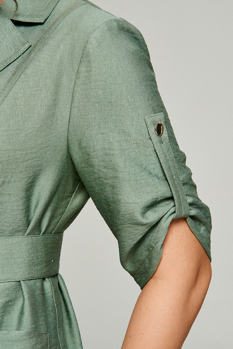 Дополнительным элементом служит пояс с декоративной пряжкой-полукольцо.