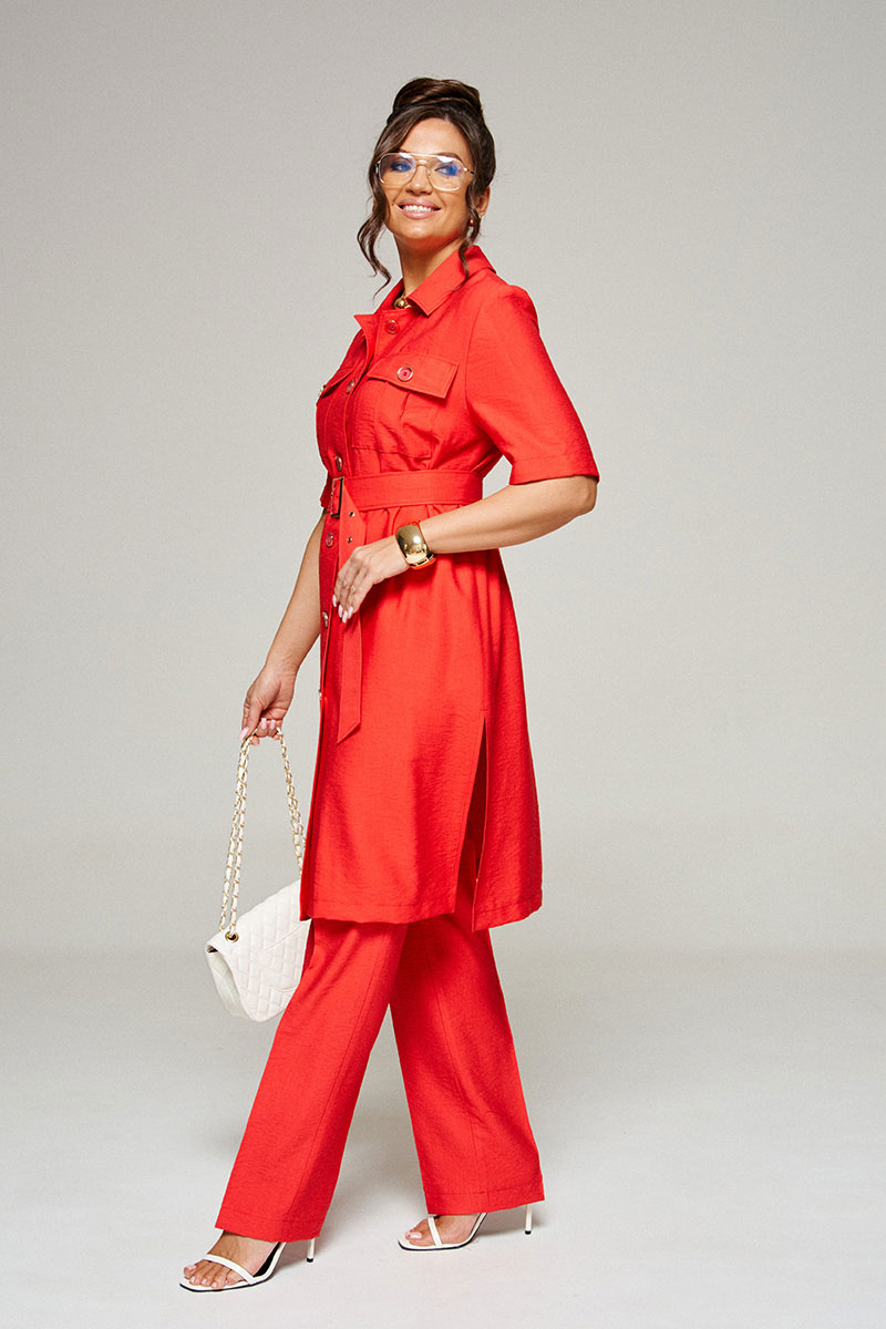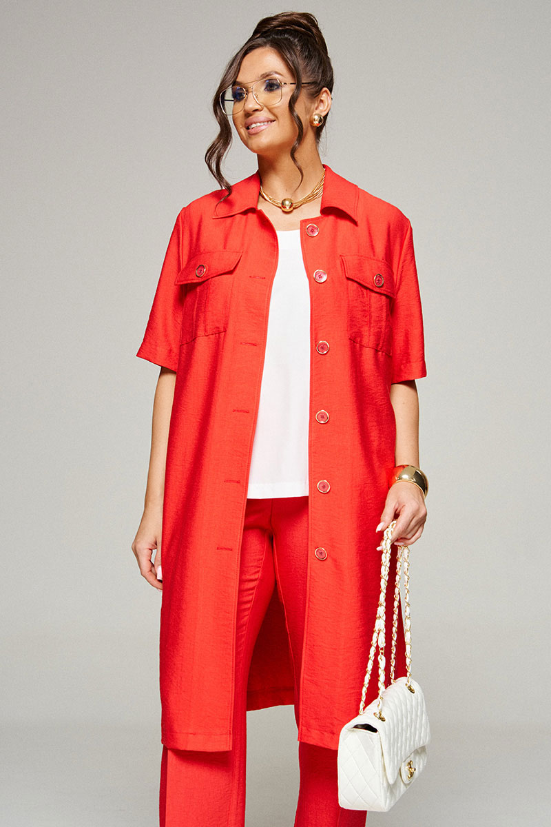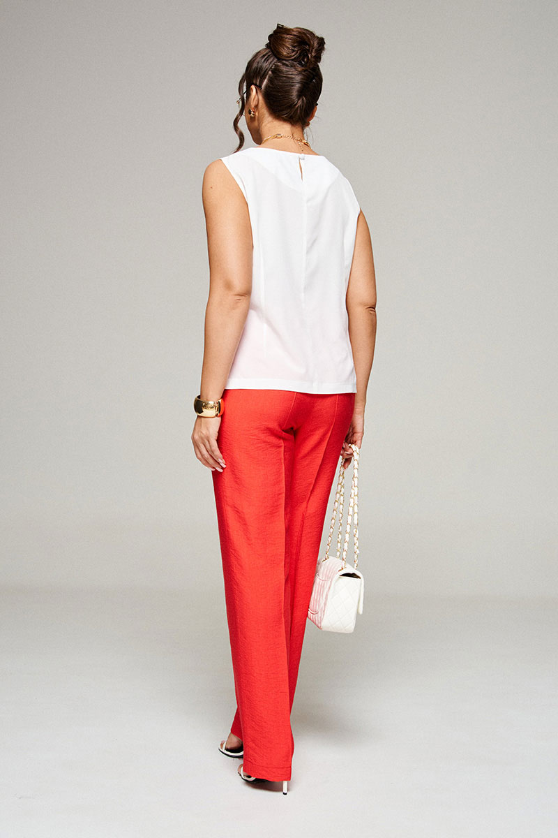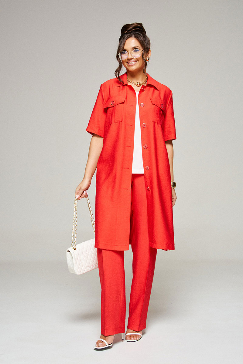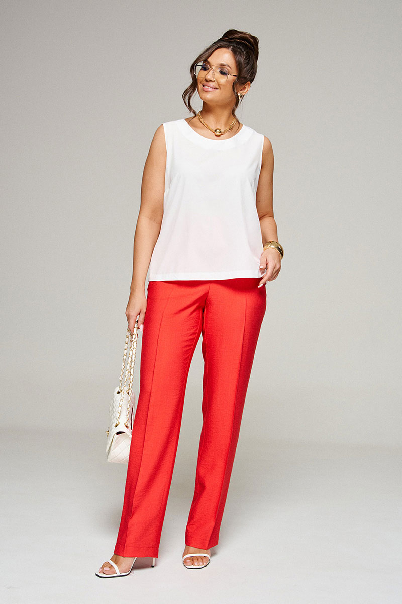 Универсальный комплект из блузки, брюк и топа – изделие вне времени и трендов, созданное в различных интерпретациях: от оверсайза до классики. Выполнен из смесового полотна с содержанием натуральных волокон – льна и вискозы, предназначен для повседневного и выходного использования. Найдет применение в жаркую и прохладную летнюю погоду.
