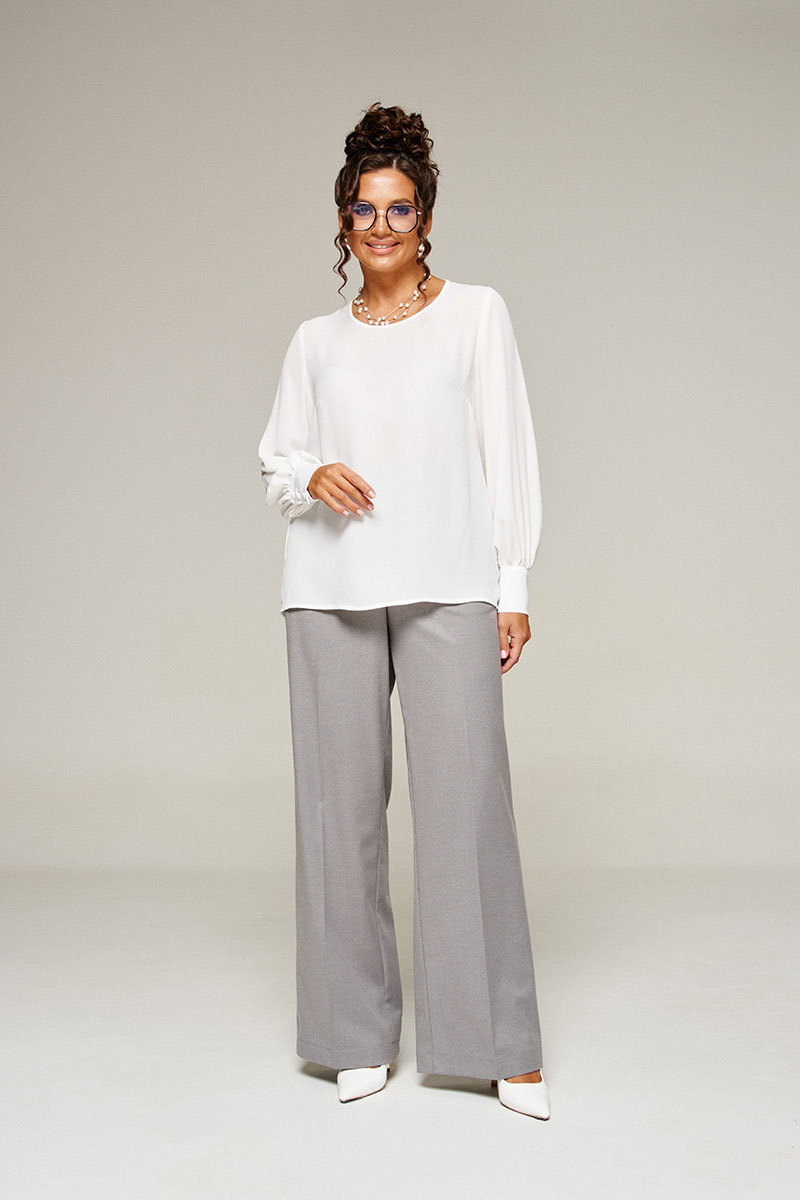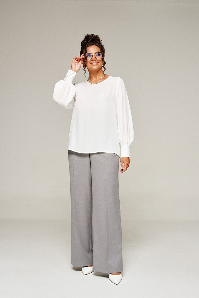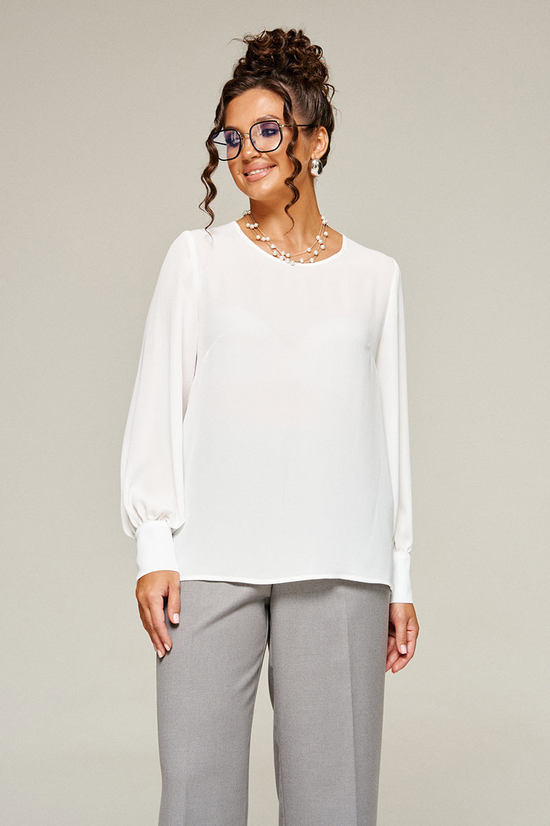 Блузка прямого, свободного силуэта, выполнена из шифонового полотна.