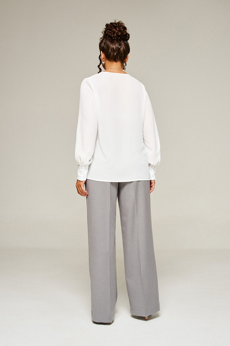 Передняя часть блузы цельнокроеная с вытачками от бокового шва.
