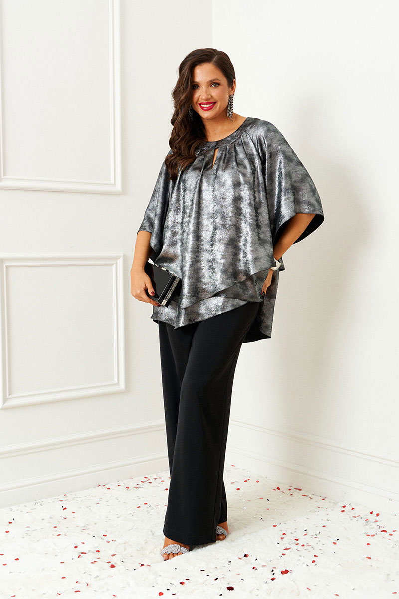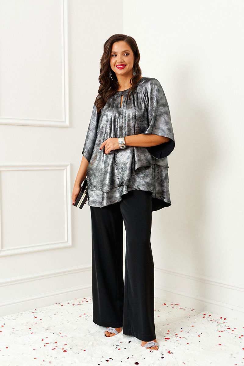 Блуза свободного кроя из легкой струящейся ткани, силуэт блузы отлично драпируется на фигуре.