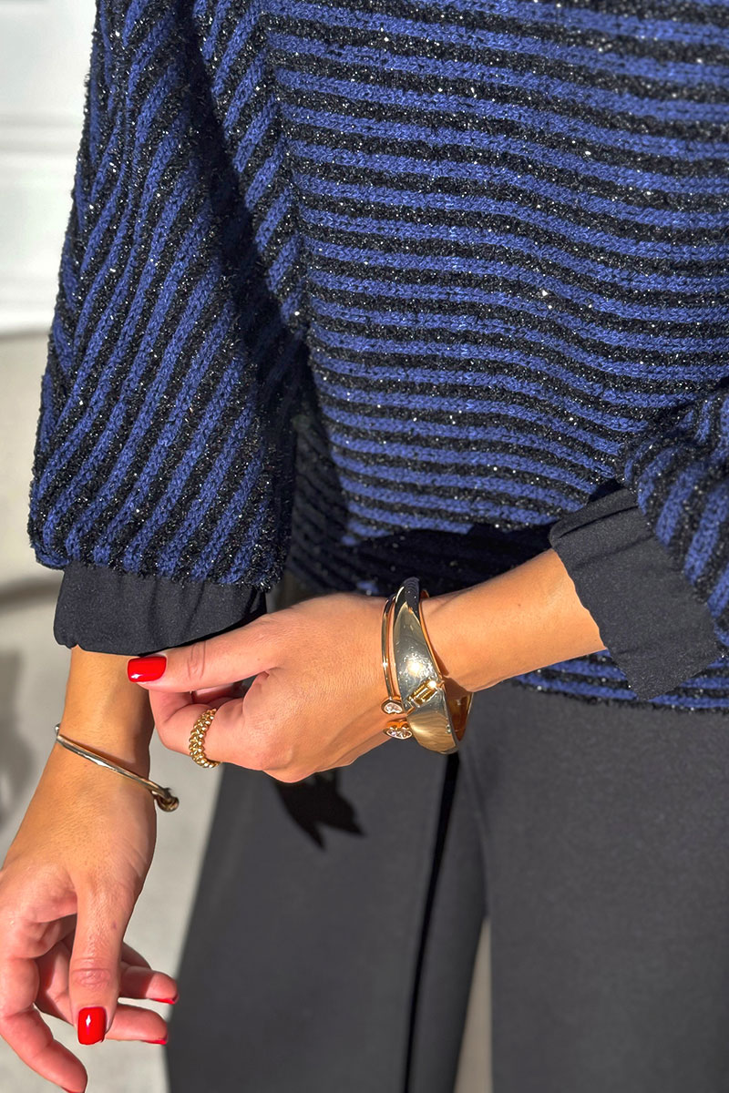 Джемпер из трикотажного полотна- травка, со спущенной линией плечевого шва. Перед и спинка без конструктивных особенностей. Горловина обработана притачной планкой из отделочной ткани Низ рукава и низ джемпера обработаны притачными планками из отделочной ткани. По низу переда пробита петля и протянут шнур по кругу через фиксаторы, что позволяет затянуть низ изделия. Рукава на основе цельнокроенного, длинной – 7/8.