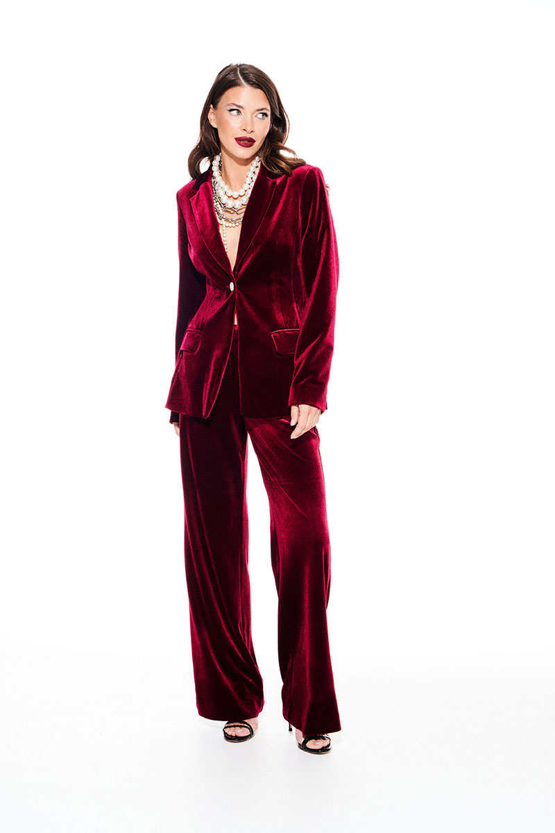 Костюм из бархата на трикотажной основе, 2-предметный, состоящий из жакета и брюк.