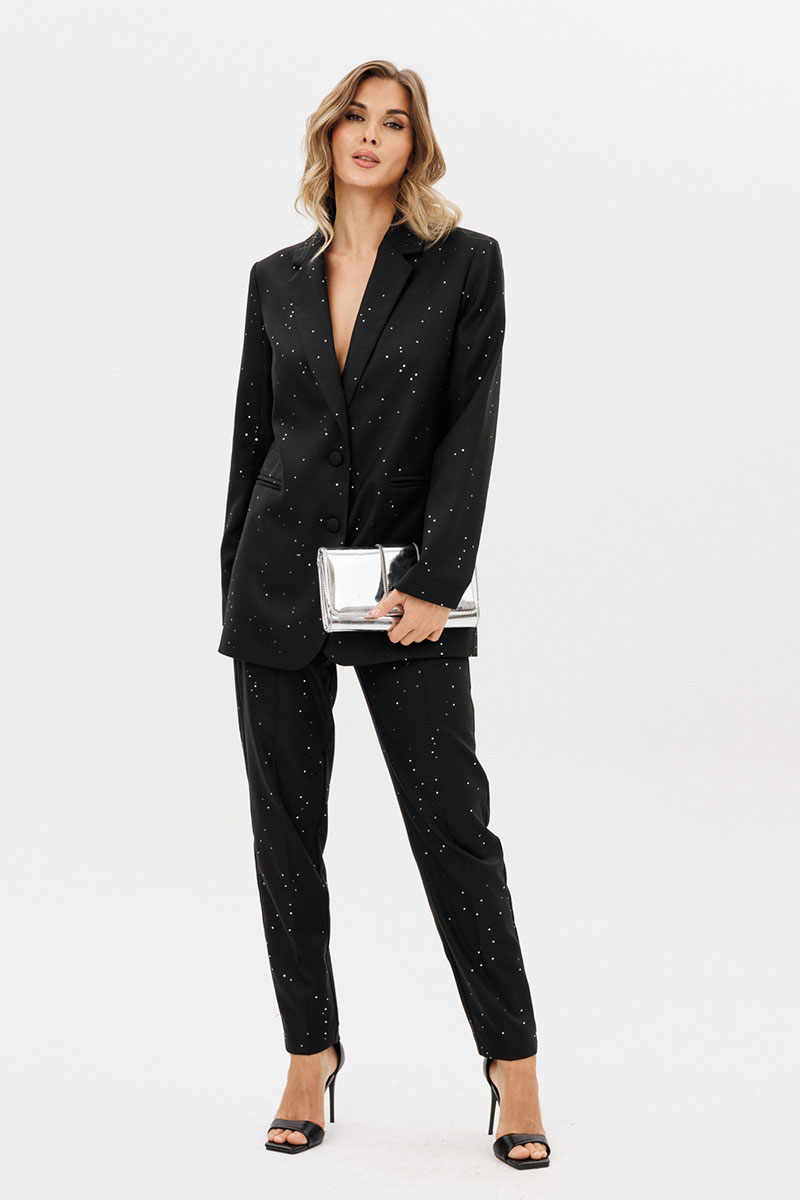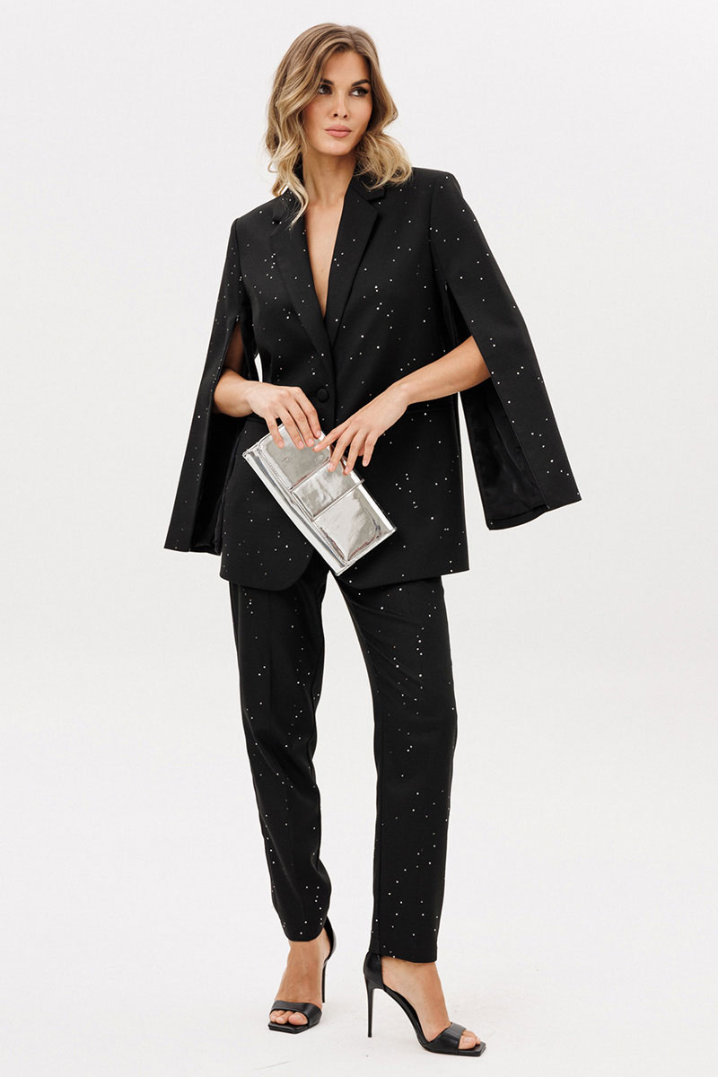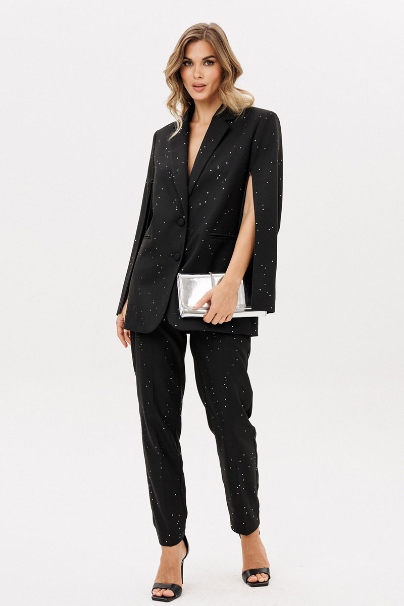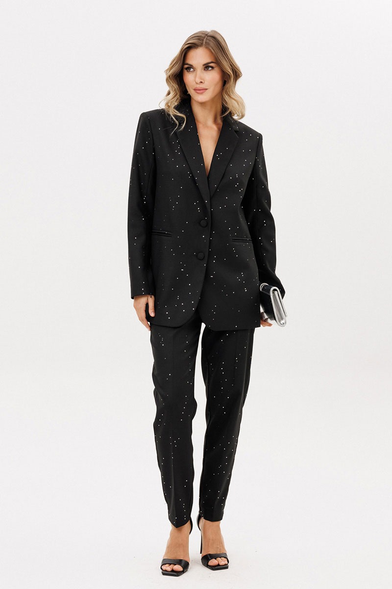Комплект: жакет + брюки. Комплект выполнен из костюмной ткани с пайетками.