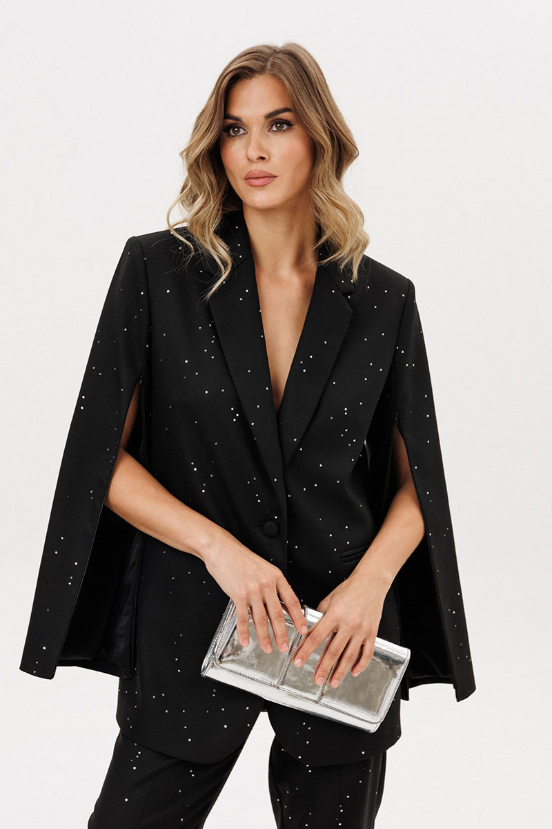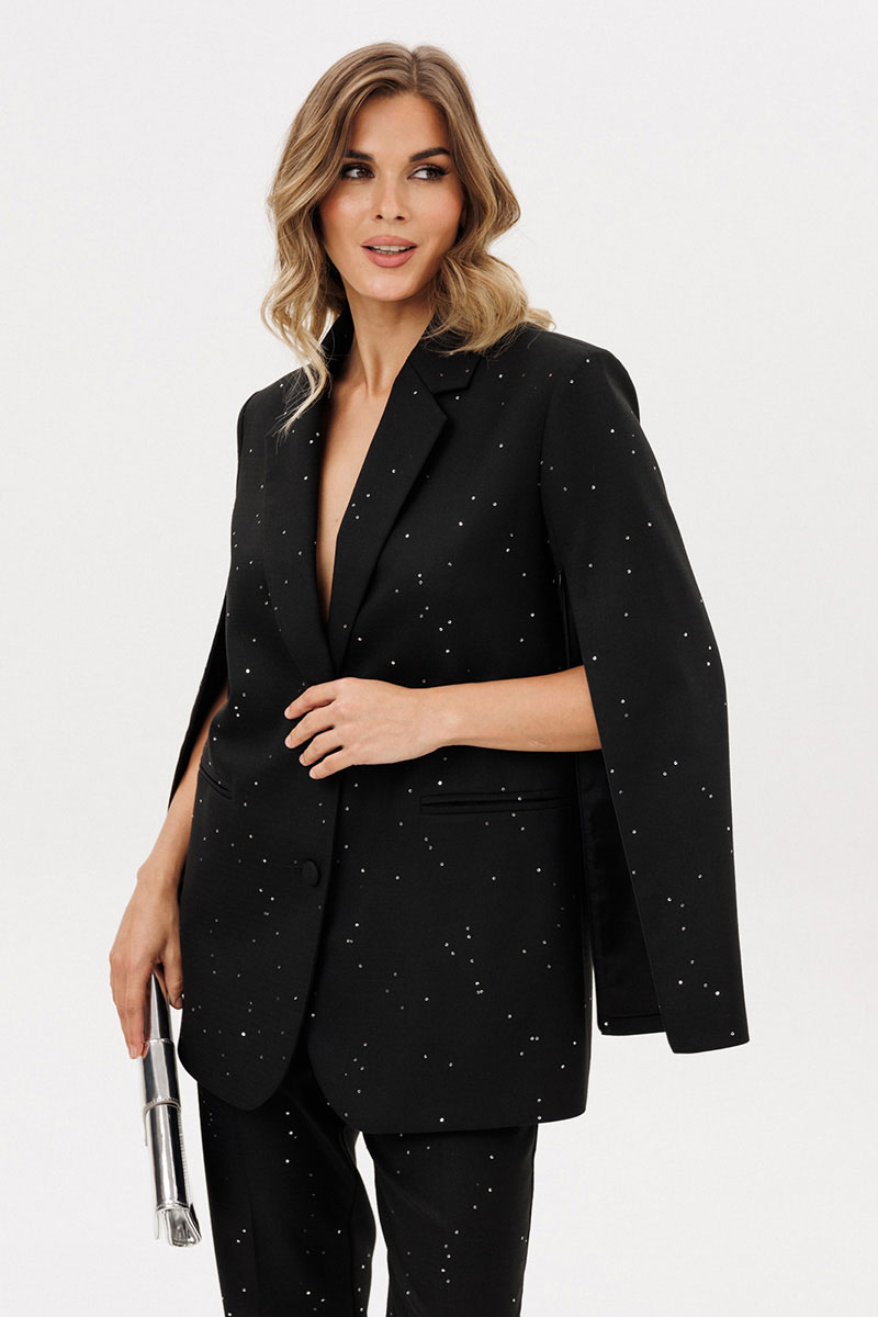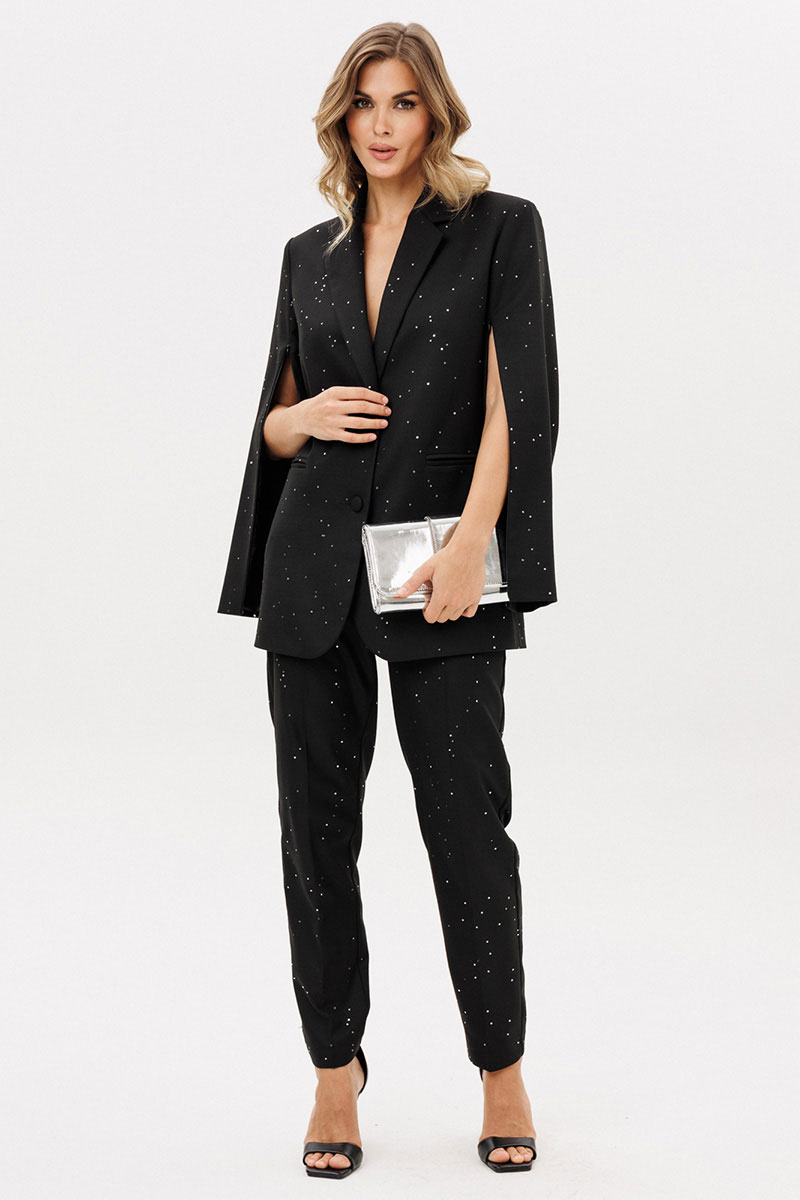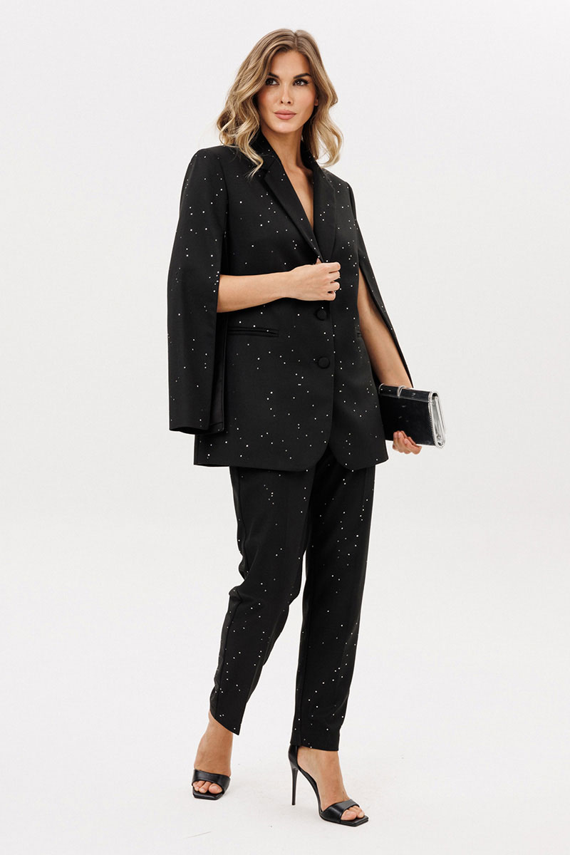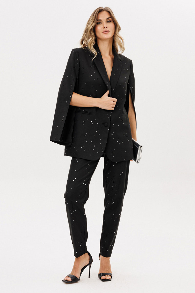 Комплект: жакет + брюки. Комплект выполнен из костюмной ткани с пайетками.