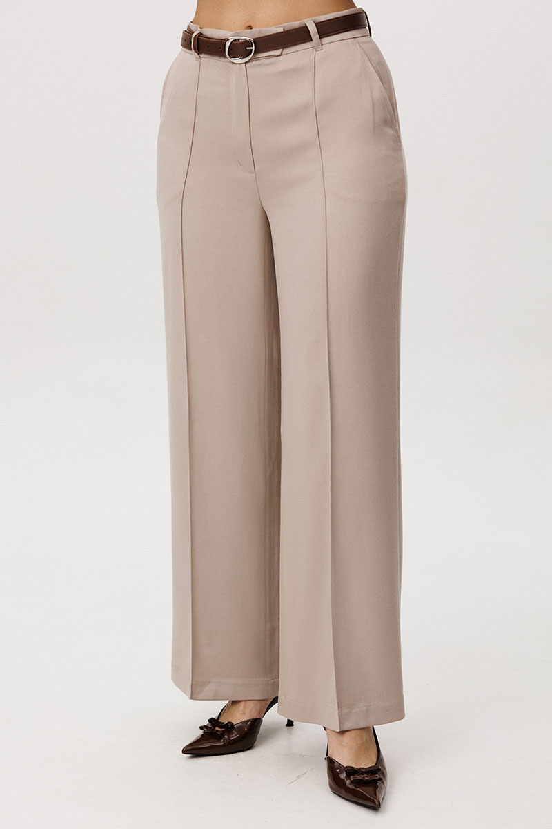 Брюки свободного покроя, высокой посадки с притачным поясом со шлёвками.