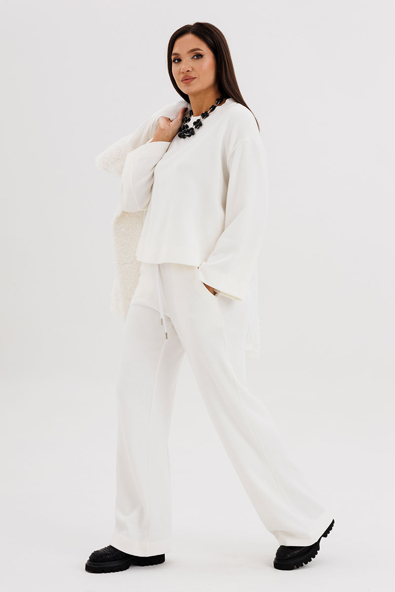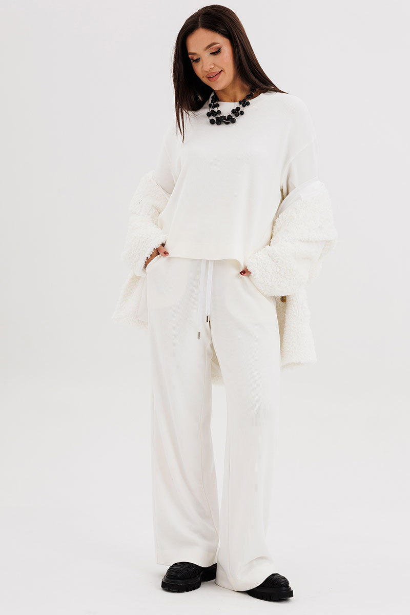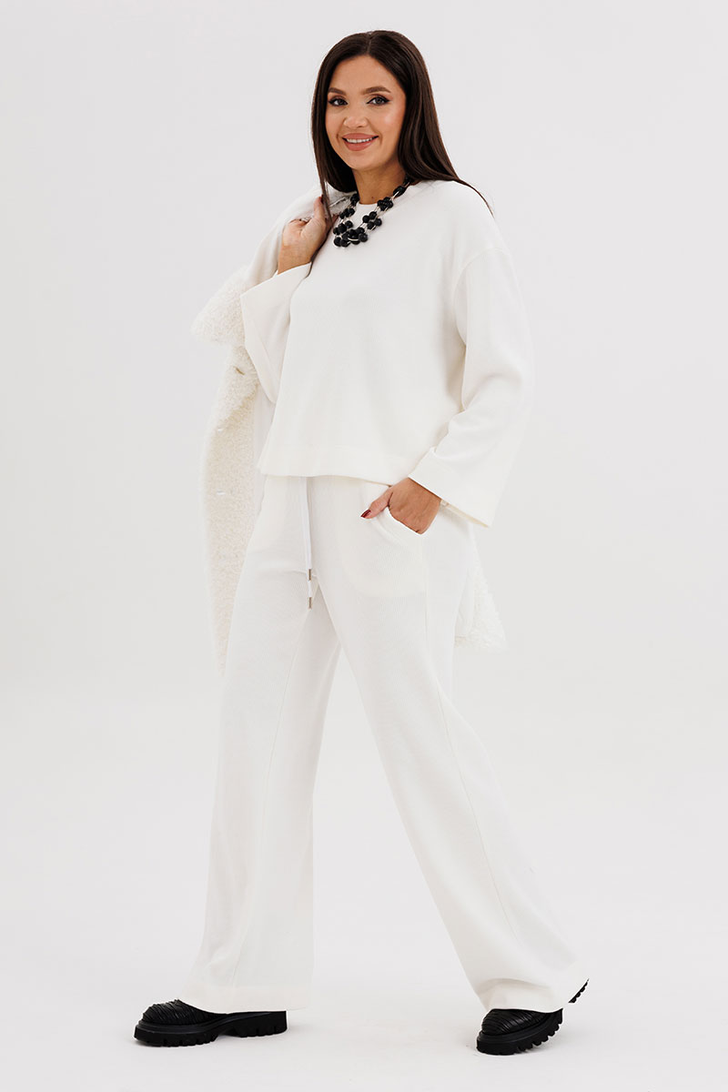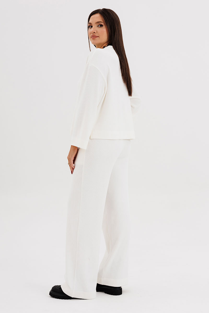 Такой вариант неформального костюма можно отметить отдельно-это настоящий шик, который в любой обстановке смотрится по-особенному. Невероятное ощущение расслабленности и комфорта обеспечивает удобный покрой и тактильно уютный трикотаж с эффектом вельвета.