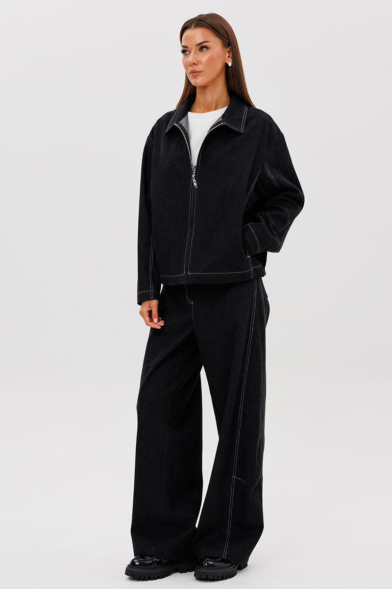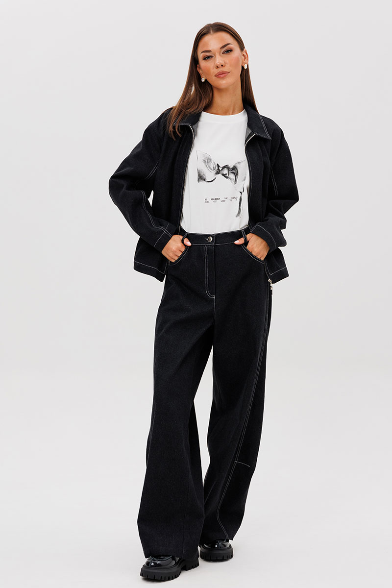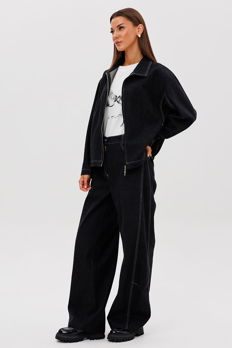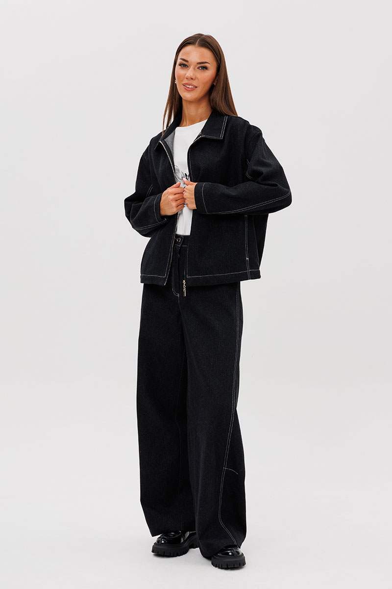 Самой практичной удобной и функциональной женской одеждой по праву считается джинсовый костюм. Этот вариант обеспечивает максимальный комфорт в носке и идеально вписывается в современный образ. Куртка джинсовая, свободного силуэта, рубашечного покроя с втачным воротником и центральной застежкой на тесьму молнию. Полочка с боковым рельефом и карманом в нем. Спинка с уентральным швом и эластичной тесьмой по низу. Рукав двухшовный, с регулирующими кнопками в области локтевого шва.