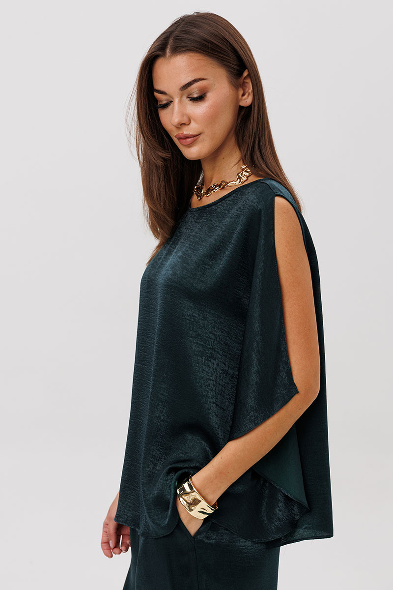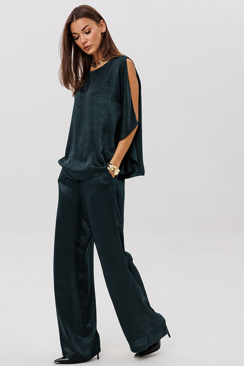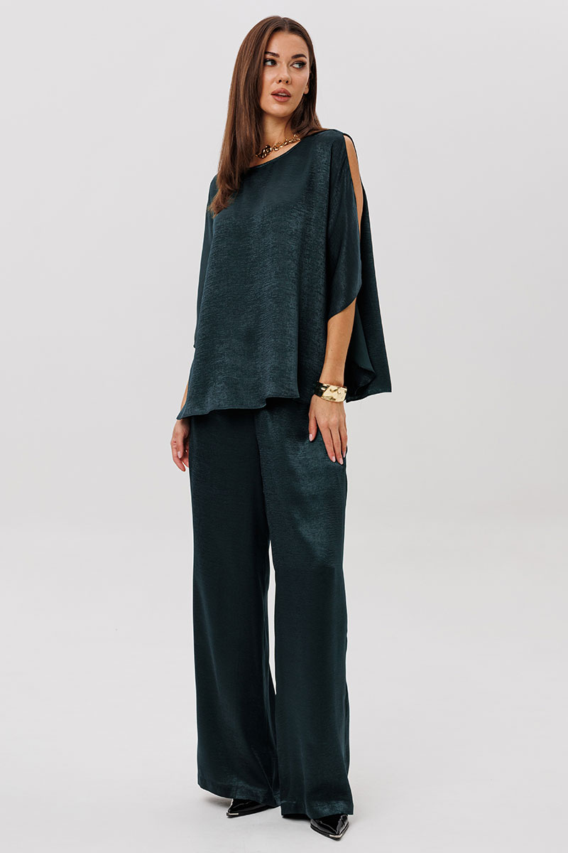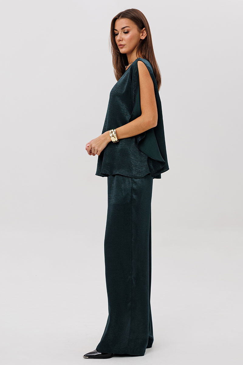 Роскошный брючный комплект из высококачественного атласа — это готовый образ для особых случаев и стильных выходов.