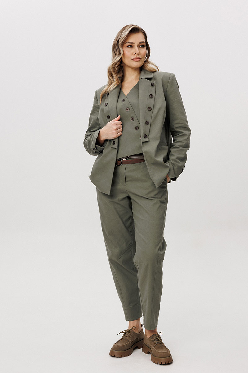 Современная брючная тройка, сочетающая продуманный крой и комфорт повседневного гардероба. Модель выполнена в стиле casual и подходит для динамичного городского ритма, сохраняя аккуратный и собранный внешний вид.