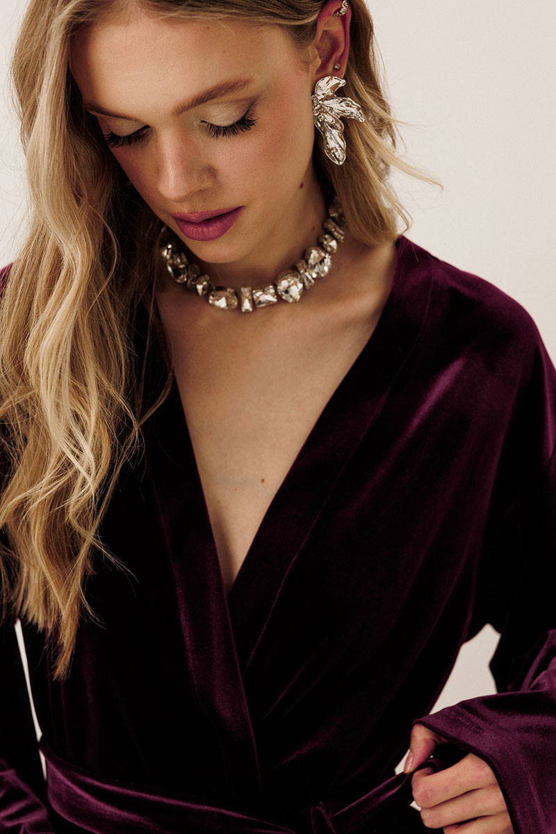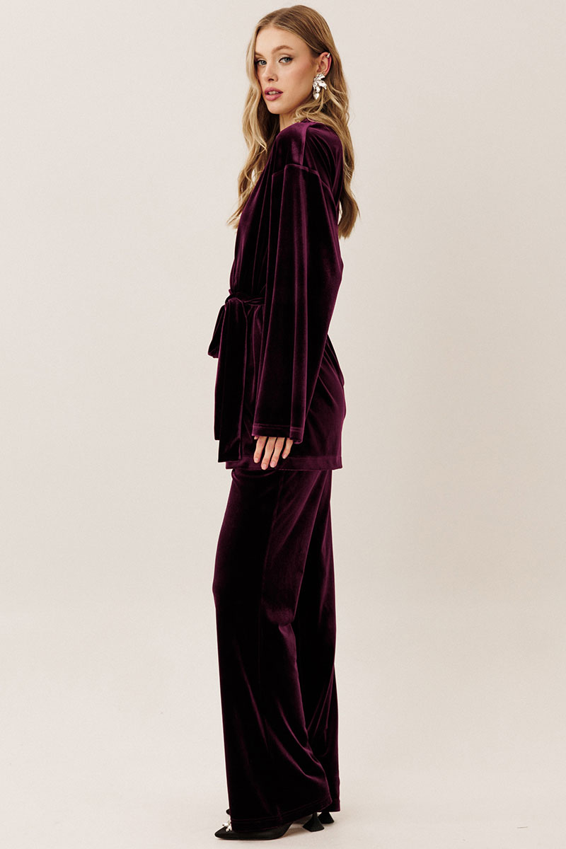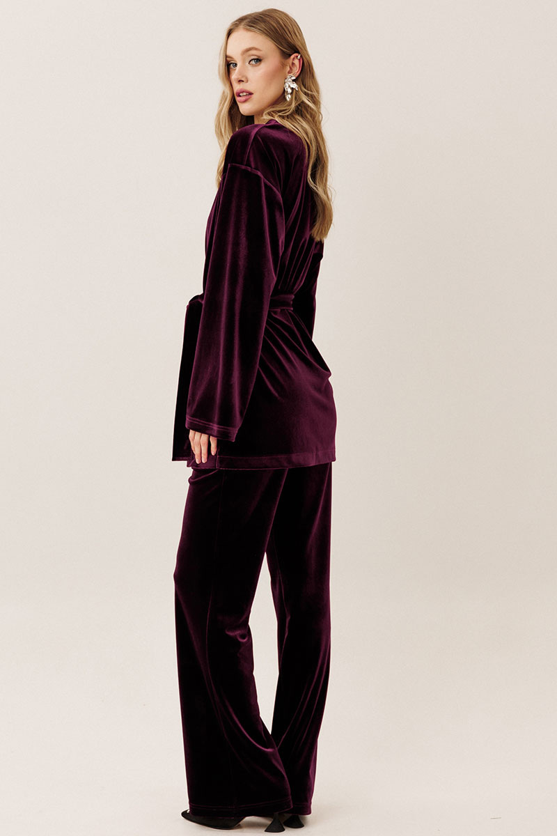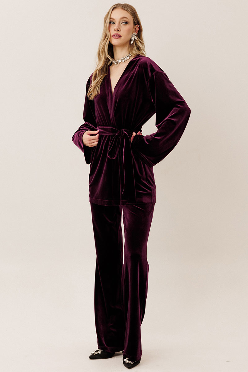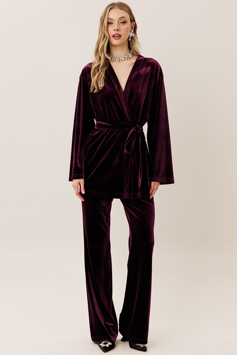 Самый женственный образ в коллекции от GO - нарядный велюровый костюм! Блузон с запахом и брюки клеш - и вы в центре внимания! Будьте стильными вместе с нами!