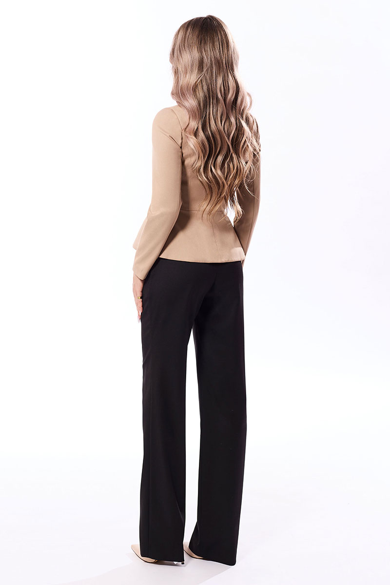 Цветовая гамма для верха, подкладки, фурнитуры, отделки: комплект выполнен из ткани в одной цветовой гамме. Основная ткань блузона контрастна основной ткани брюк