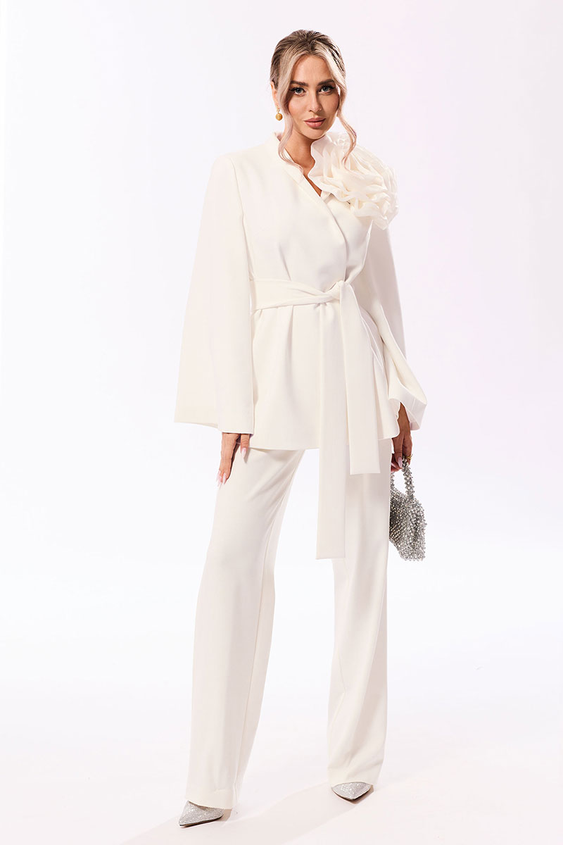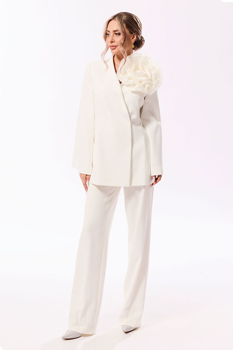 Комплектация: жакет на подкладке, брюки, съемное украшение