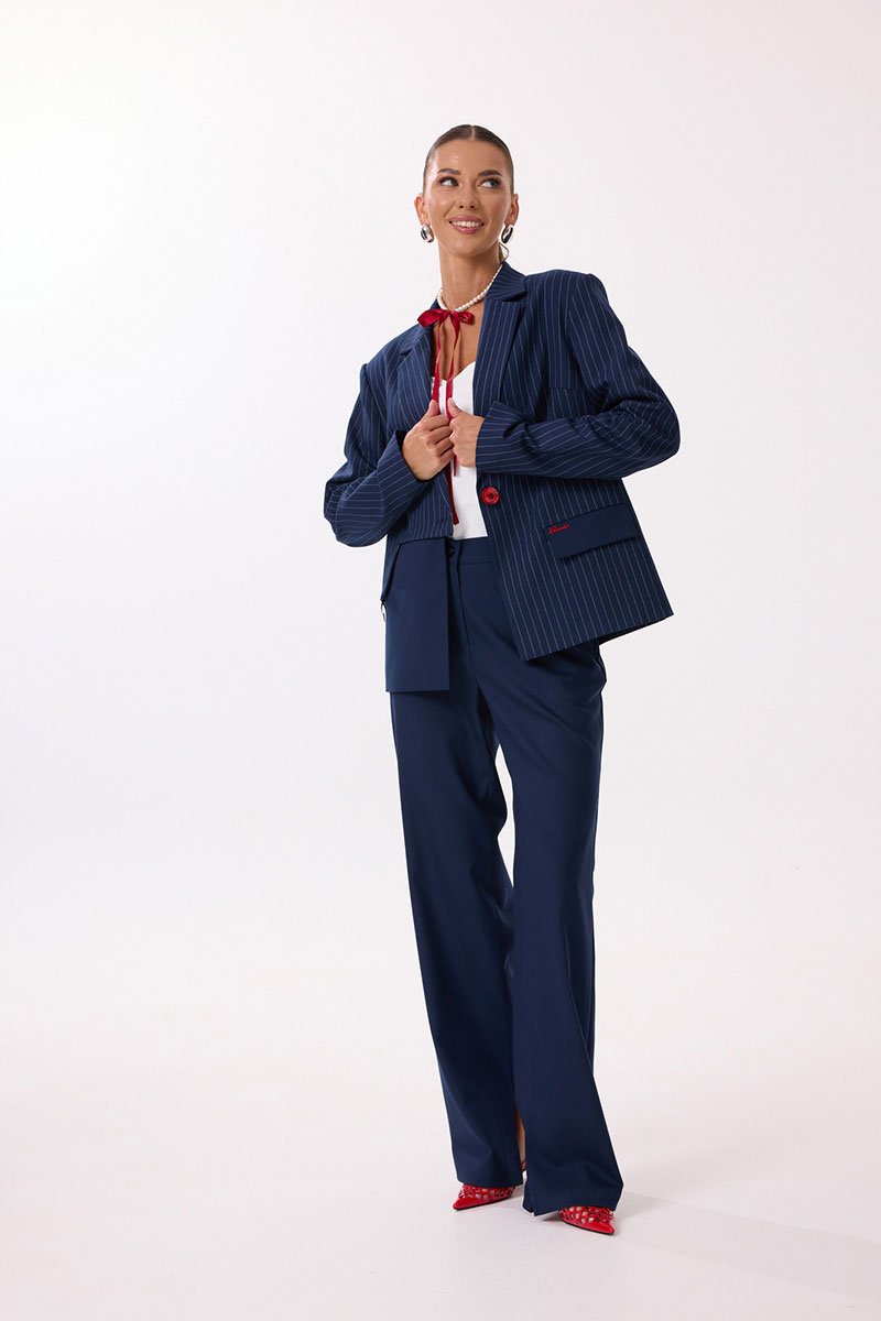 Костюм женский, состоящий из жакета на подкладке и брюк.