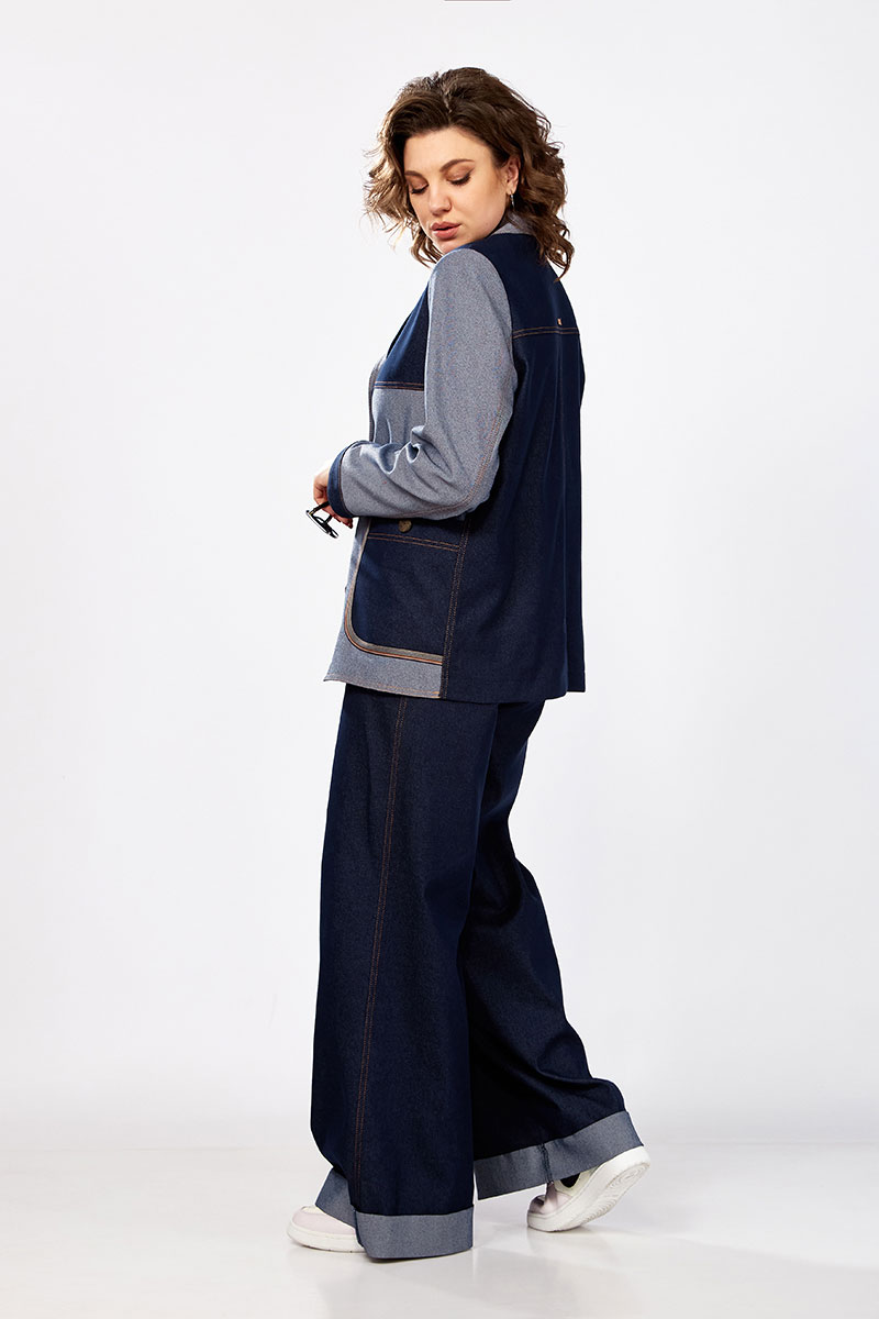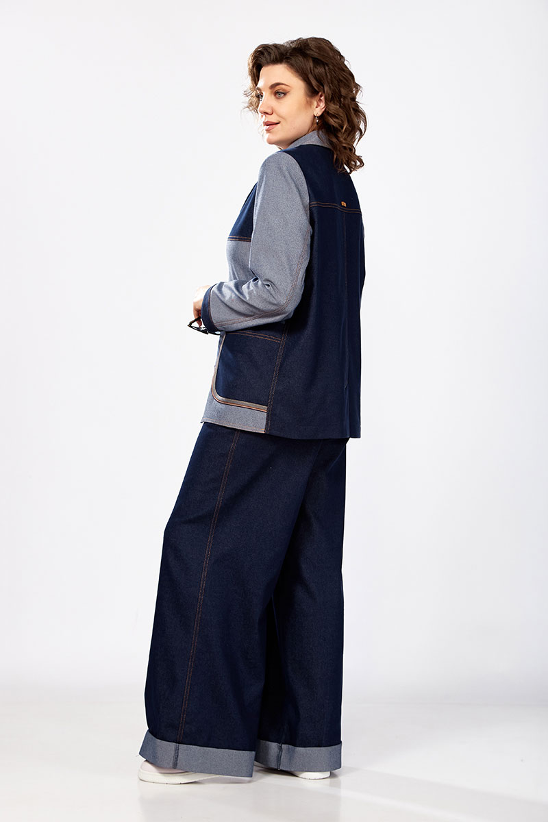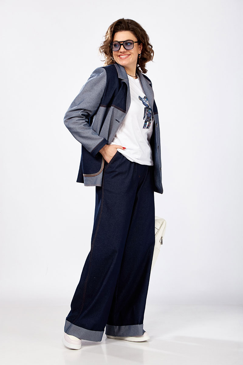 Уникальный дизайнерский брючный костюм из хлопкового джинса. В нем легко и комфортно, можно носить куда угодно: на работу, в офис, на свидание, в ресторан, на любой праздник или просто на прогулку.
