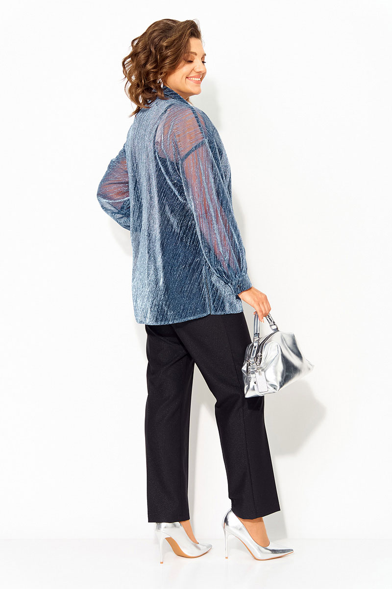 Состав: блуза: ПЭ 76%, мет. нить 20%, спандекс 4%; брюки: ПЭ 40%, вискоза 30%, шерсть 20%, ПА 10%