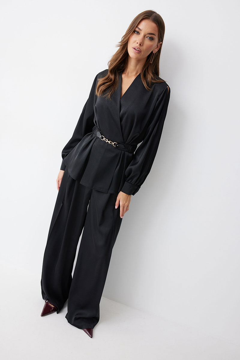 Комплект, состоящий из блузки и брюк.