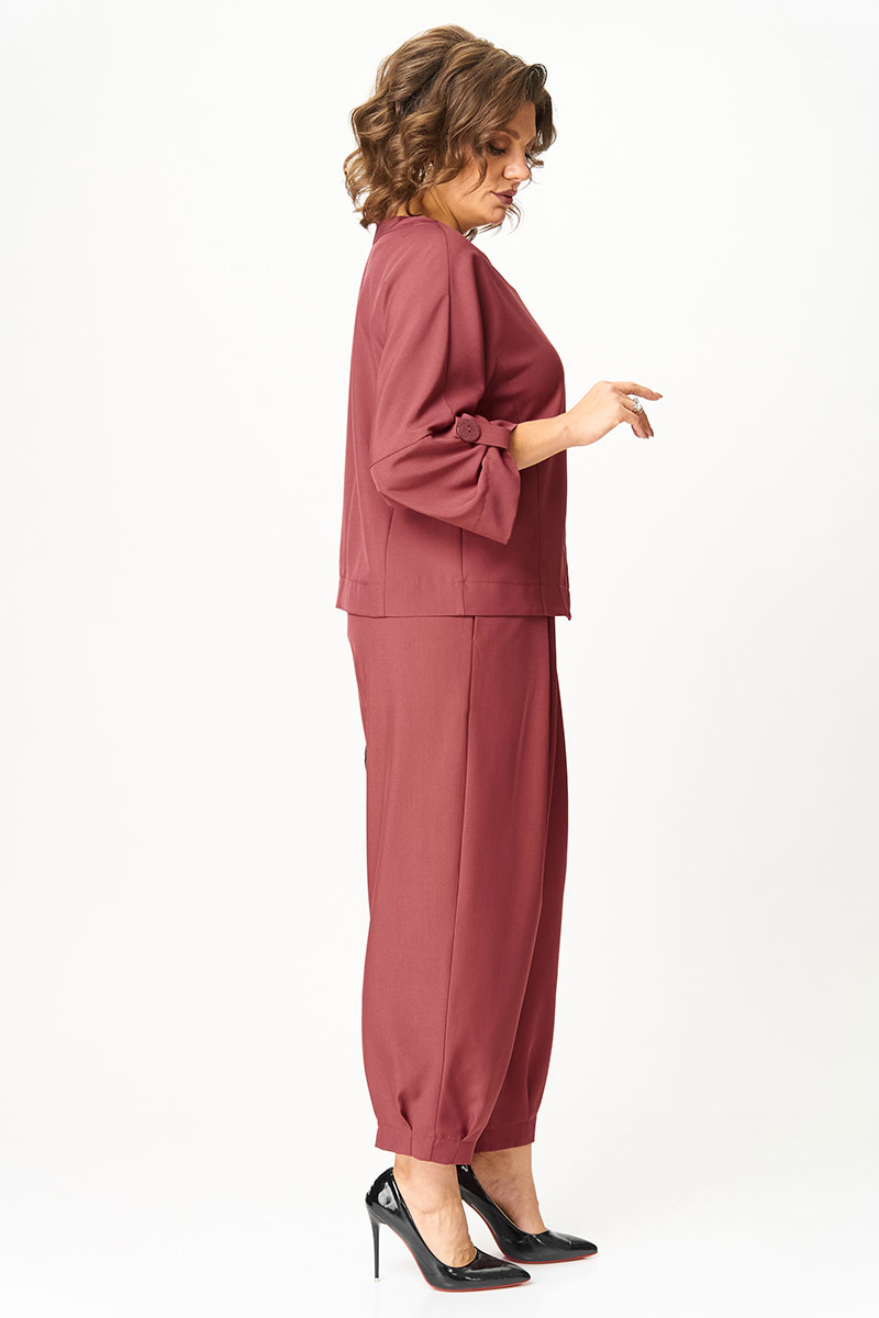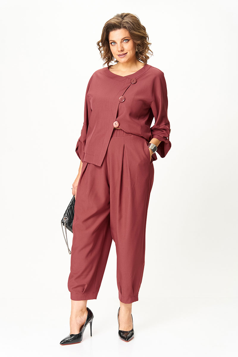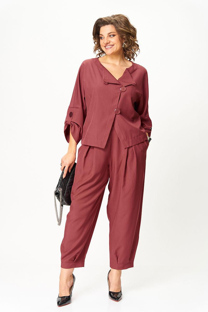 Универсальный костюм, который выглядит дорого и современно, но при этом дарит комфорт и лёгкость. Его можно носить как комплект или по отдельности: жакет с асимметричной застёжкой и акцентными пуговицами легко сочетается с джинсами, а брюки свободного кроя идеально смотрятся с блузой или футболкой.