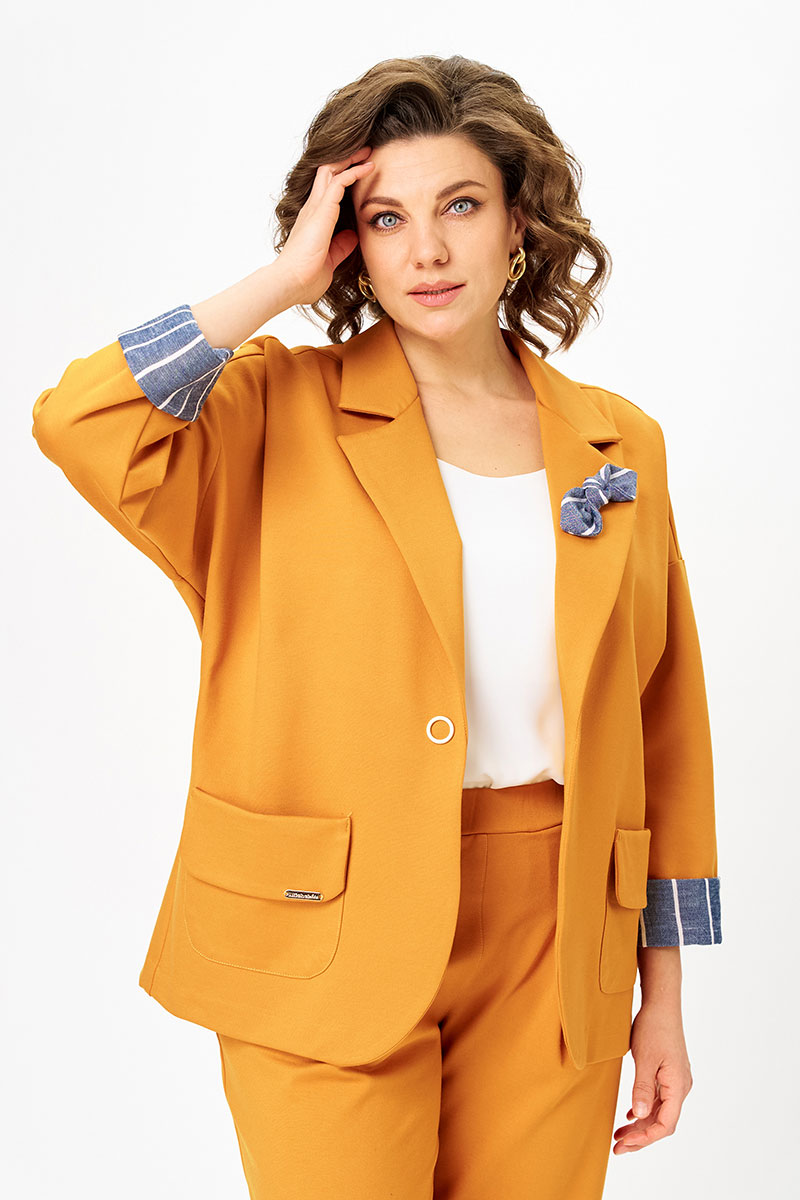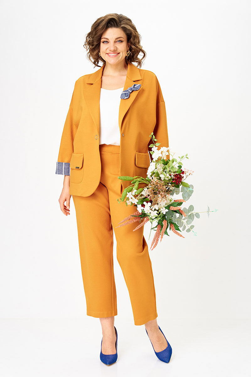 Обновлённый вариант нашего бестселлера - костюм, который уже в этом году взорвал продажи. Цвет манго — тёплый, сочный, живой - задаёт настроение и работает как стильный акцент в гардеробе современной женщины.
