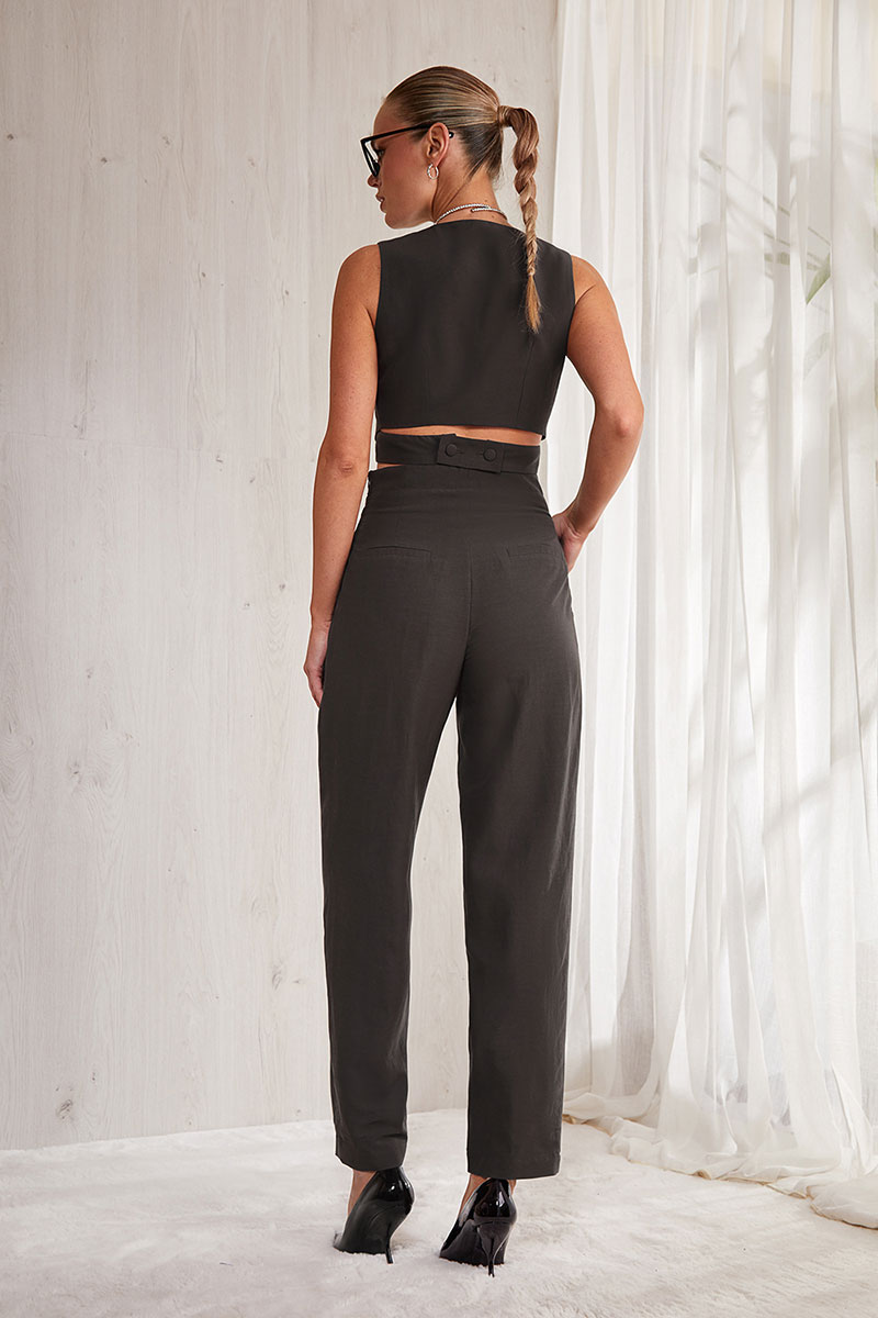 Костюм из тонкого льна с вискозой, состоящий из топа и брюк.
