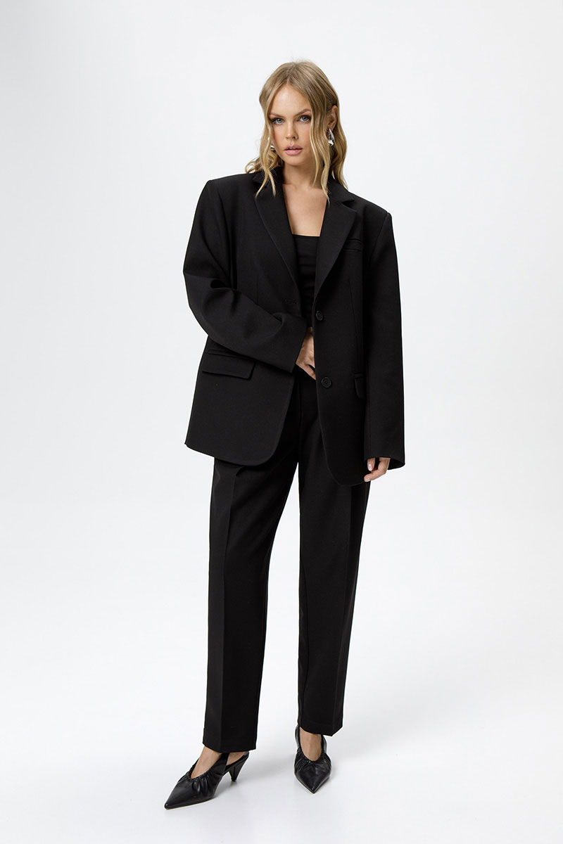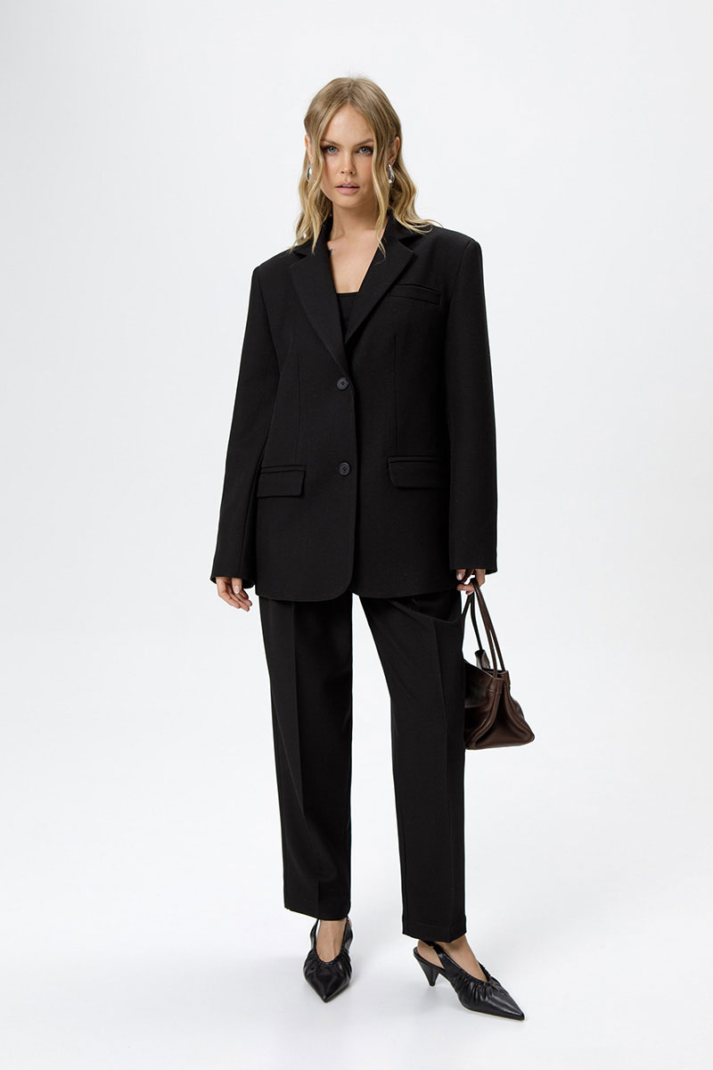 Костюм-двойка из оверсайз жакета и брюк со складками из костюмной ткани в рубчик.