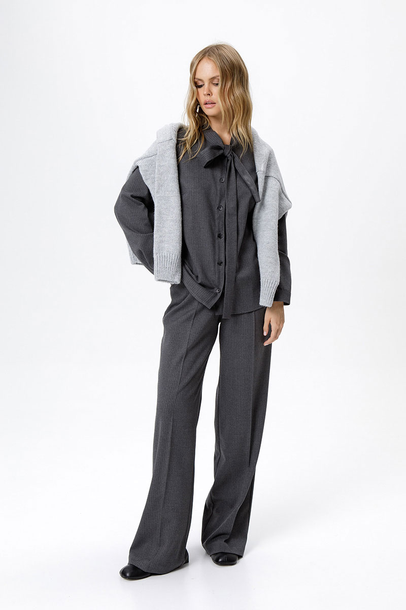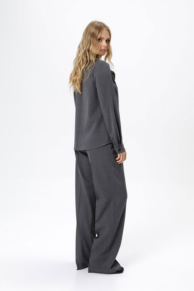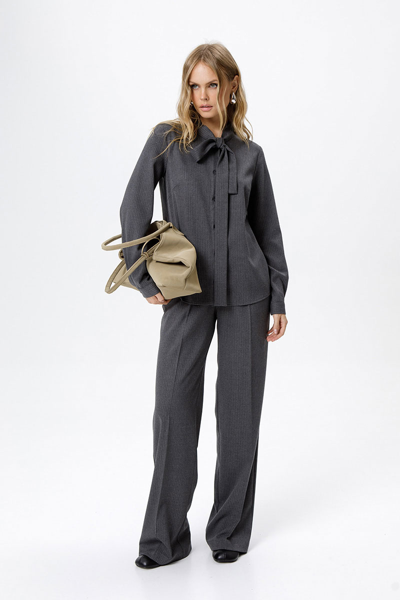 Костюм-двойка из рубашки и широких прямых брюк.