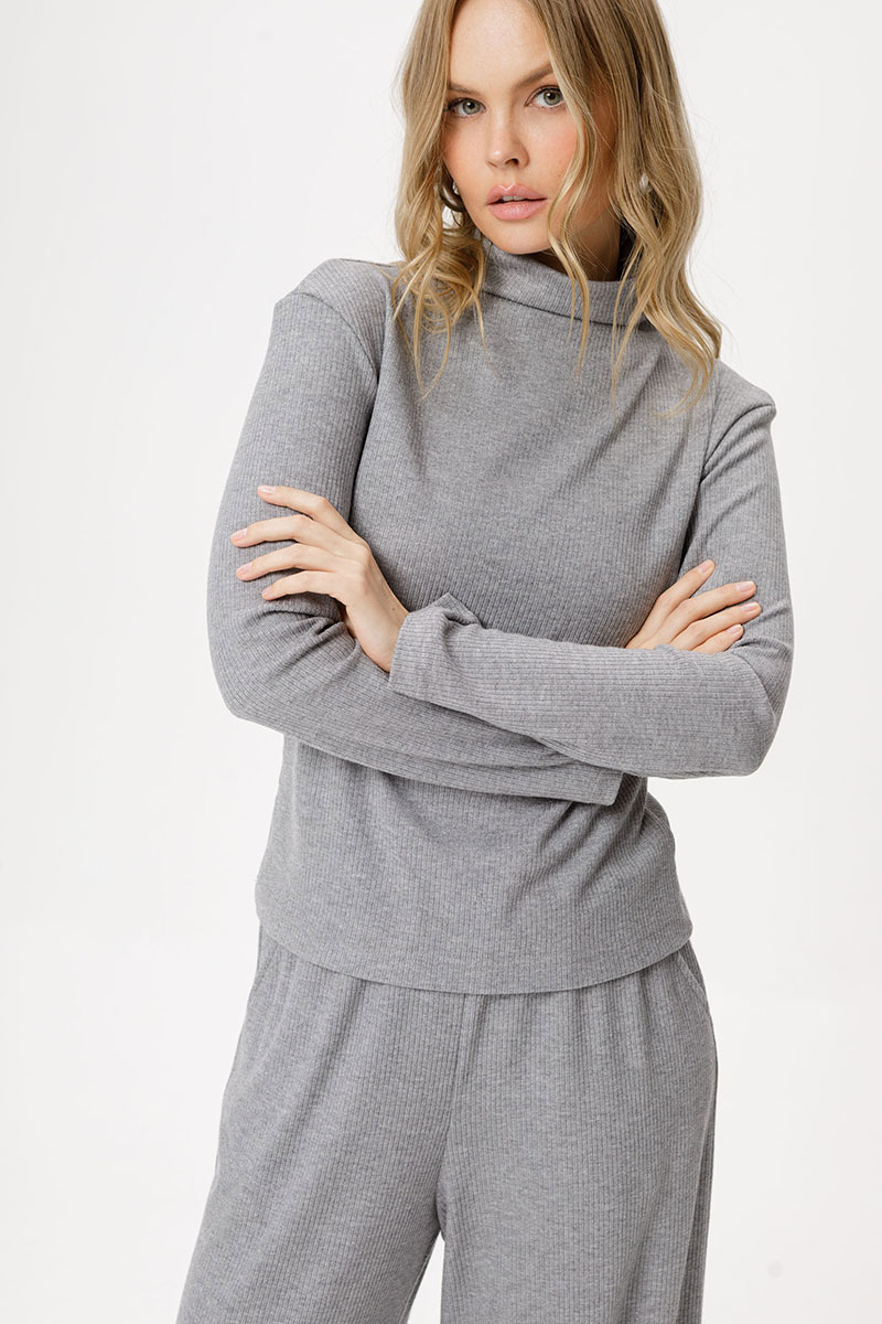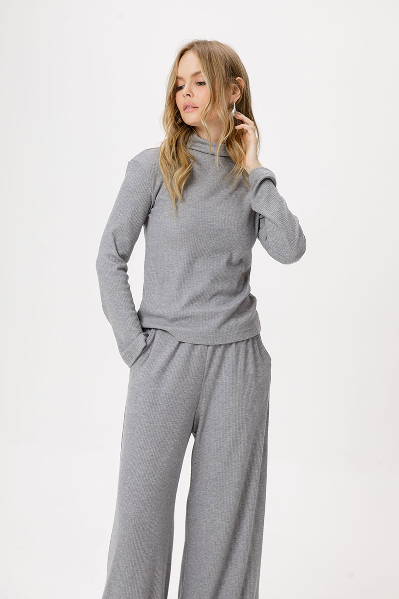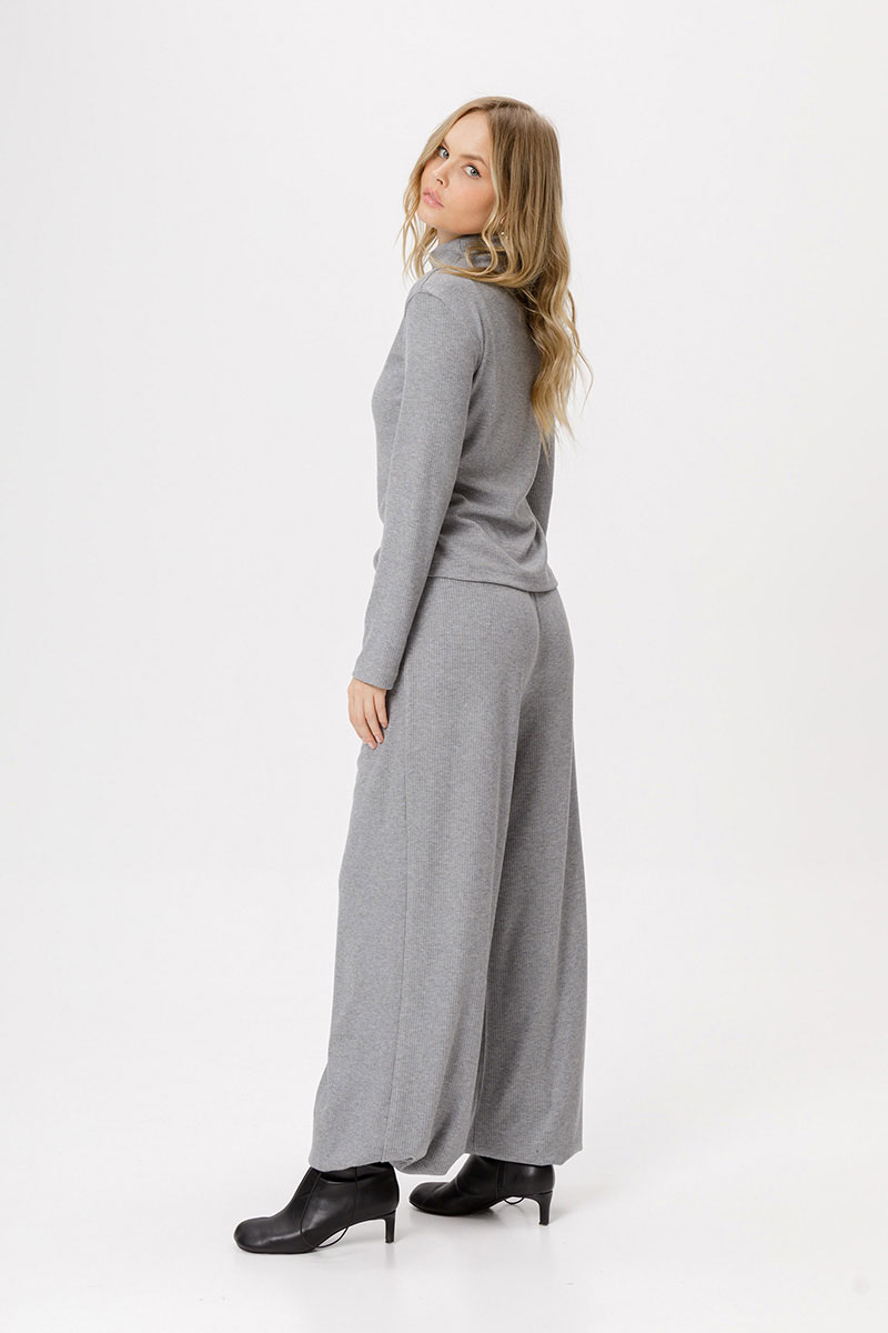 Детали: джемпер со спущенными плечами, полуприлегающий силуэт, втачные длинные рукава. Брюки с высокой посадкой, эластичный пояс с резинкой, боковые карманы.