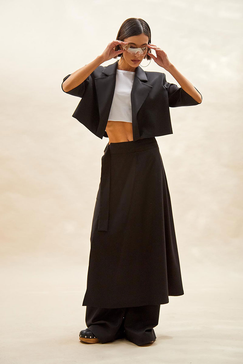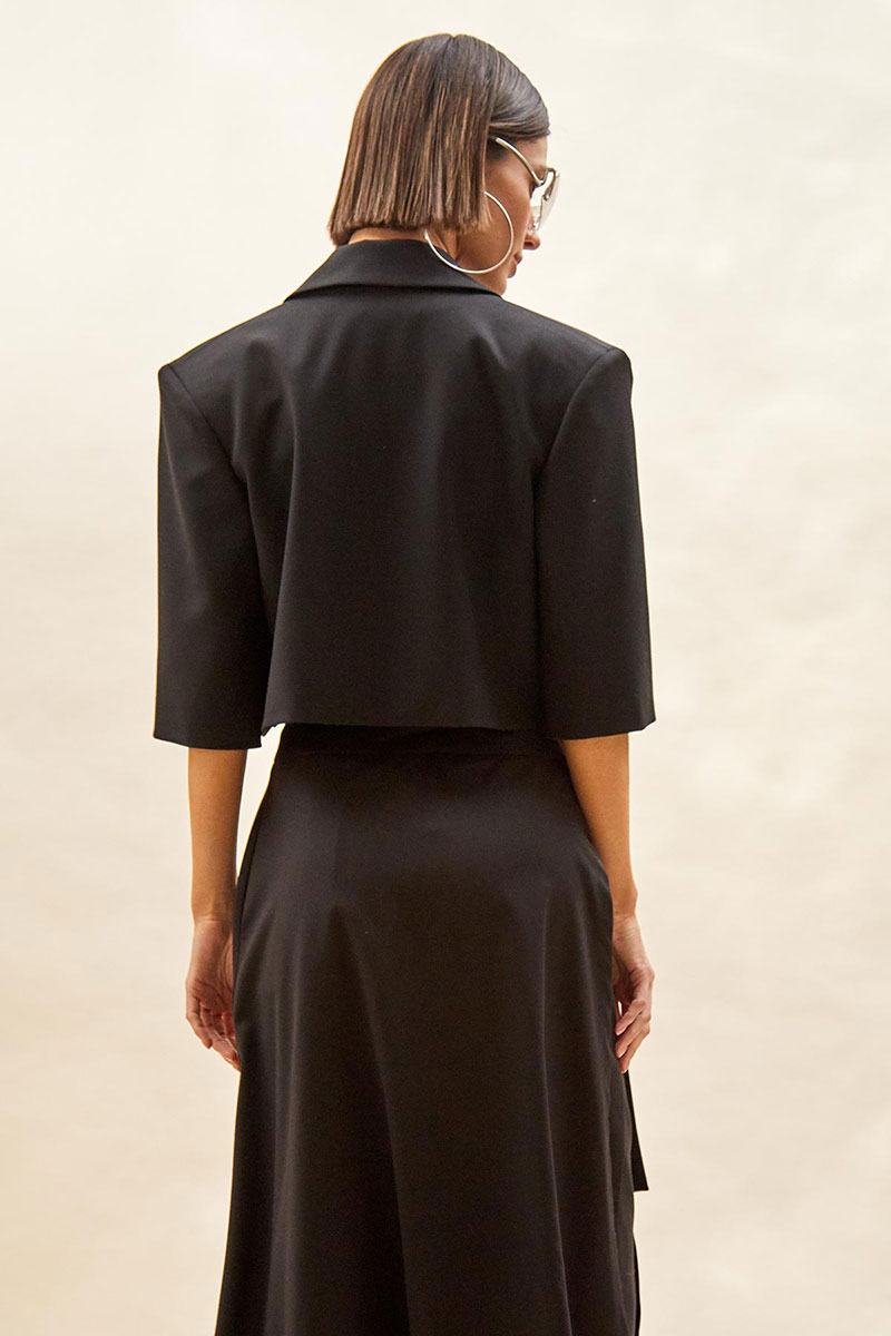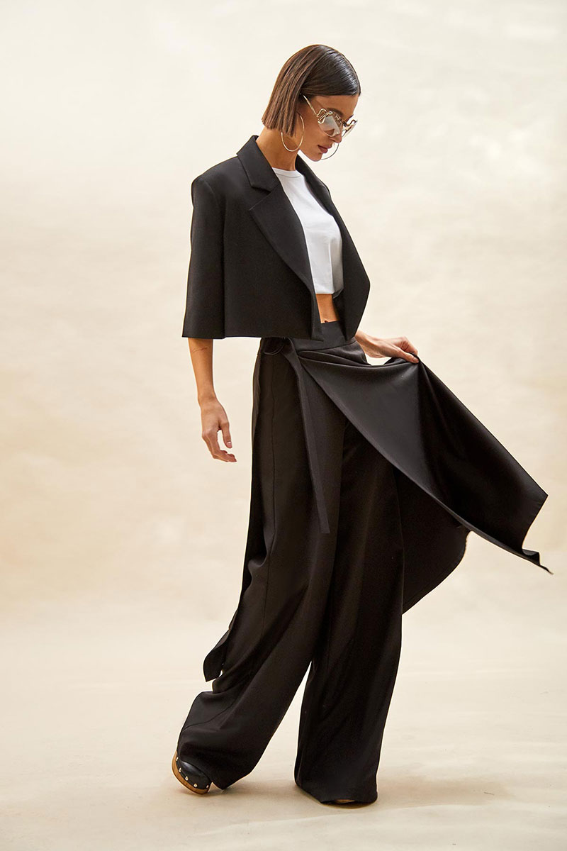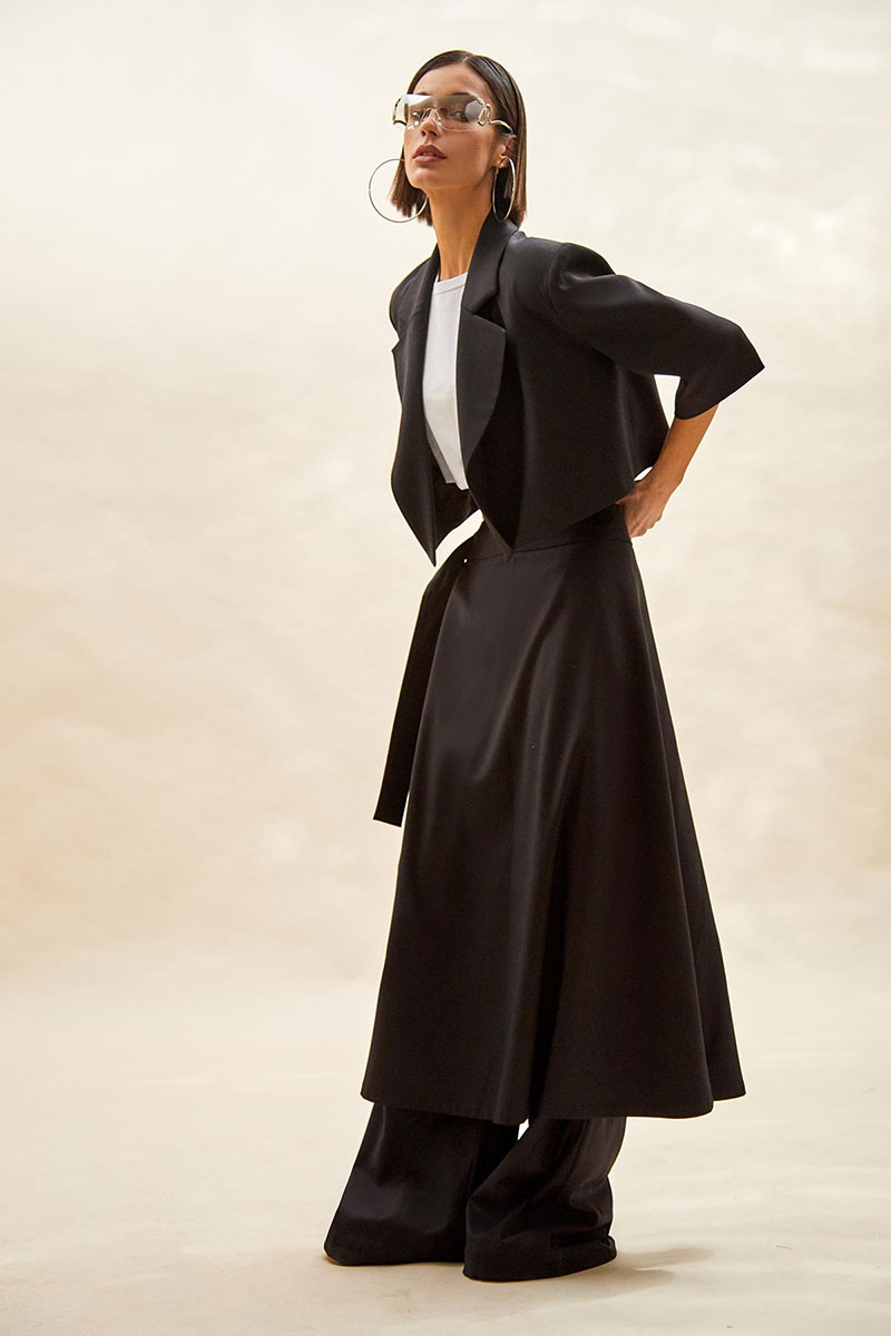 - воротник пиджачного типа с широкими по линии низа лацканами;
