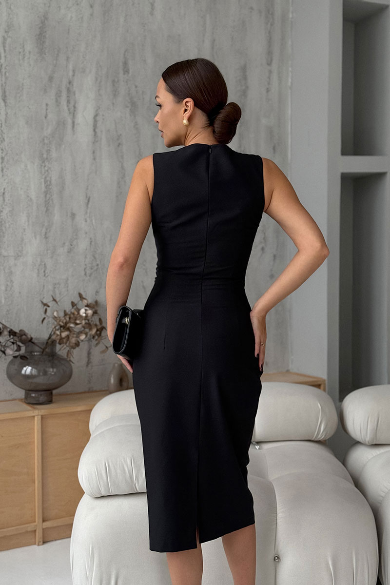 Платье полуприлегающего силуэта, длинной чуть ниже колена.