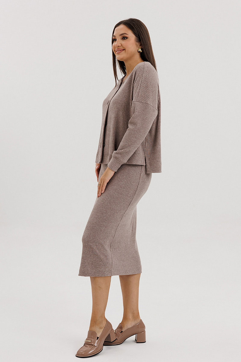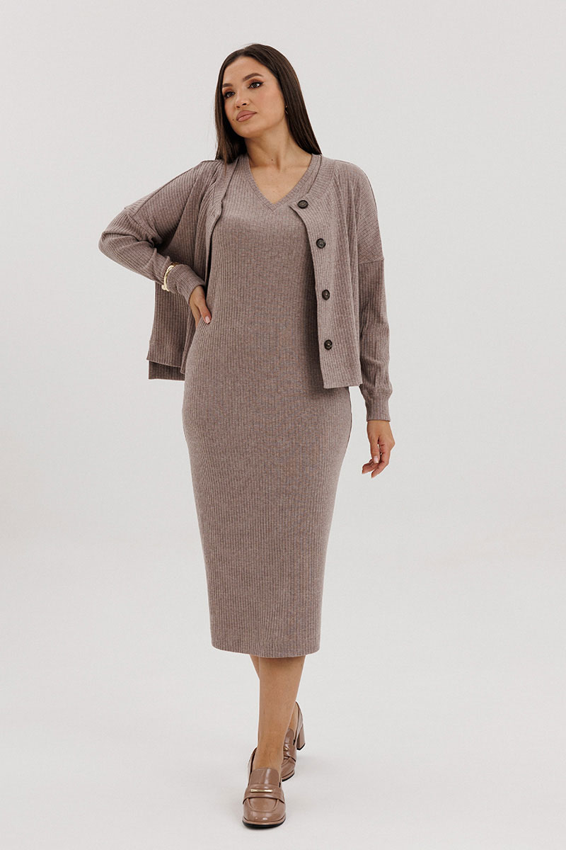 Трикотаж - это не только про зиму: ведь его мы носим круглый год, но именно осенью и зимой о выходит на новый уровень. Такой комплект создаёт трендовые образы без лишних усилий и даёт возможность подчеркнуть свой стиль. И это - кардиган и платье.