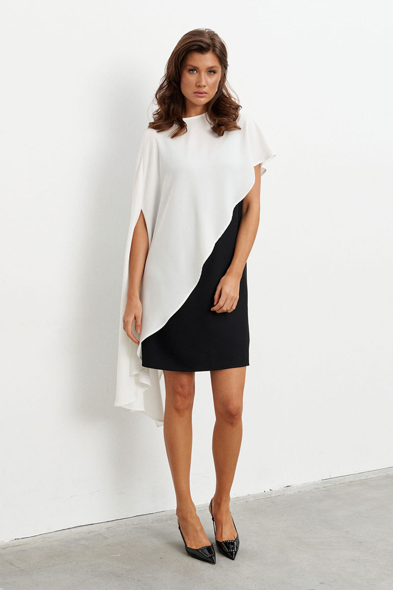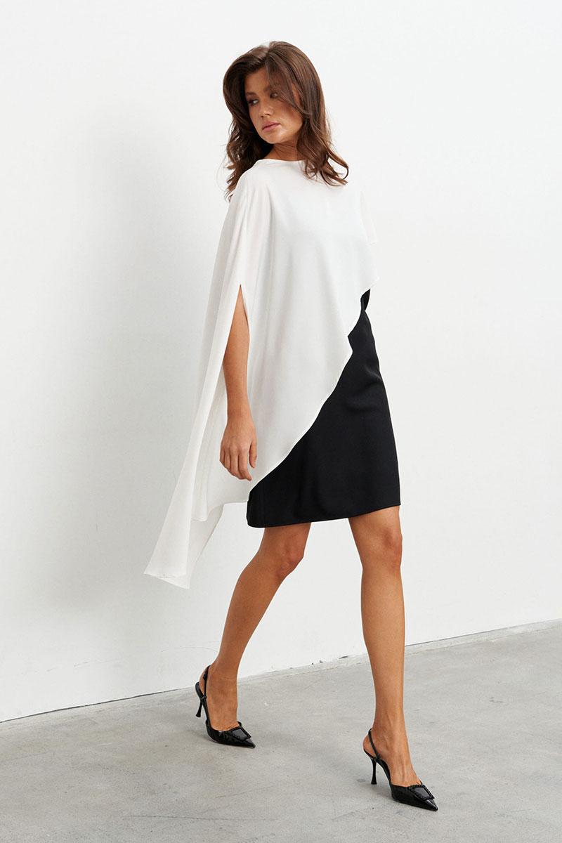 Комплект, состоящий из платья-комбинации длиной мини и асимметричной блузки.