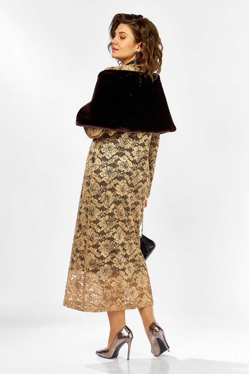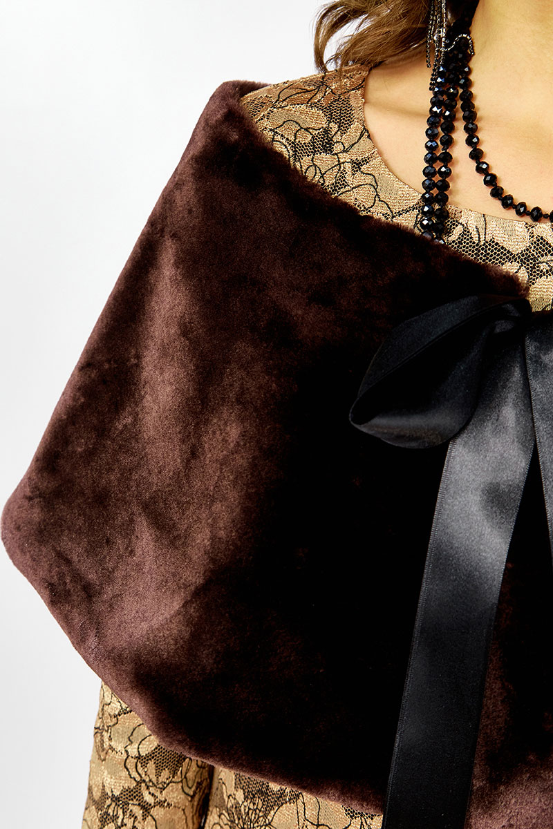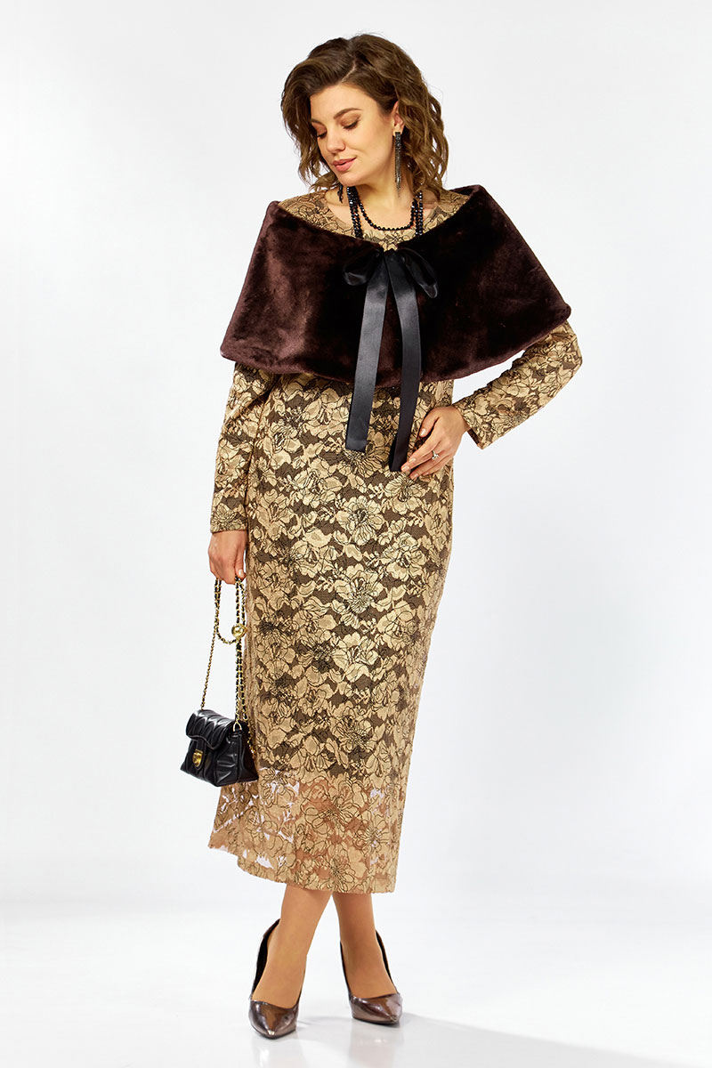 Элегантный и утонченный комплект с изящной меховой горжеткой, созданный для особых случаев. В основе платье полуприлегающего силуэта на трикотажной подкладке из кружевного гипюра с контрастным рисунком в цветочной тематике, мягко драпируетс , создавая воздушный легкий силуэт. Длинные рукава и свободный крой добавляют образу благородства и загадочности.