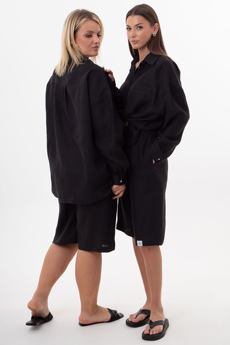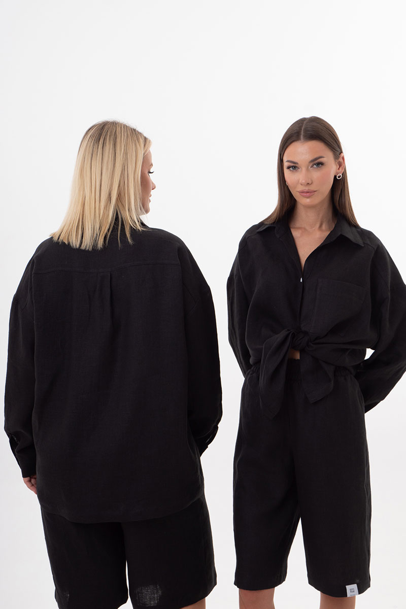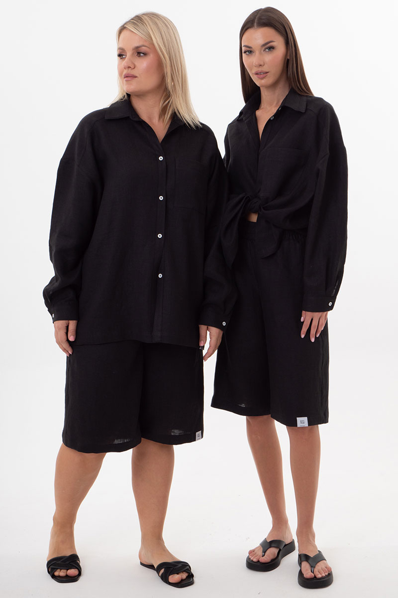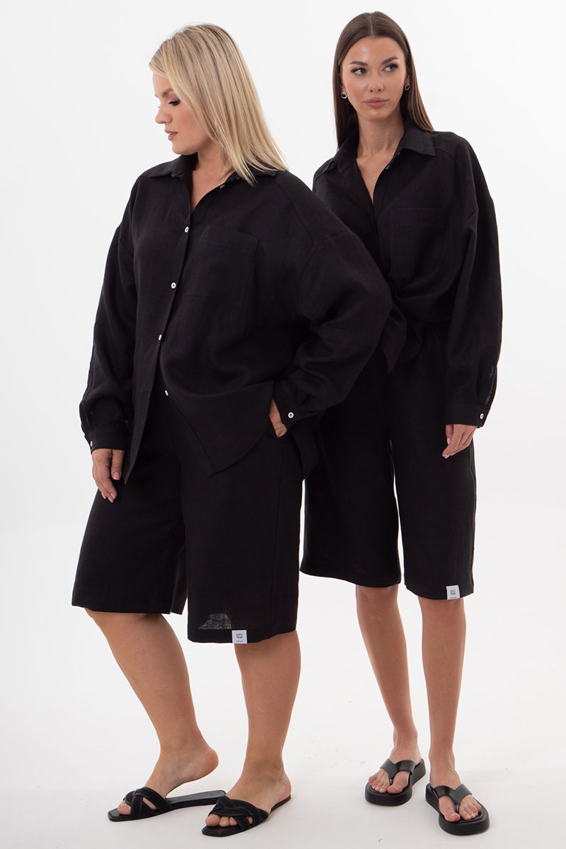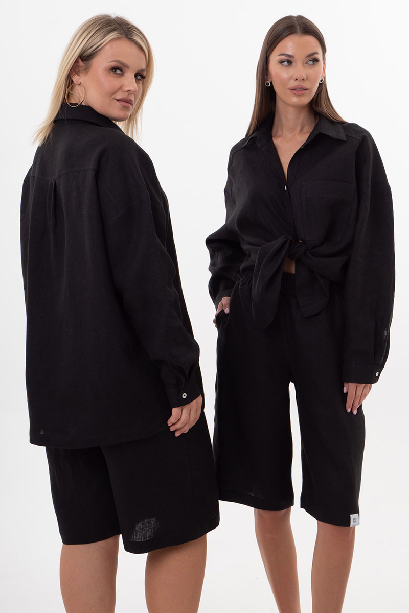 Блуза: Утонченный фасон с аккуратным воротником и натуральной текстурой льна подчеркивает женственность. Свободный крой и лаконичный дизайн делают ее идеальной парой для шорт, создавая гармоничный лук для города, отпуска или неформальных встреч.